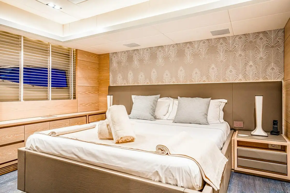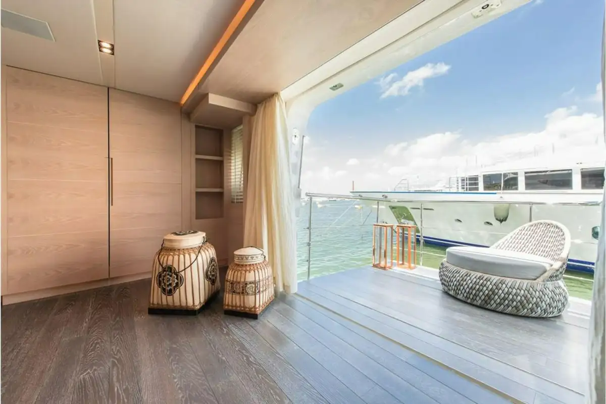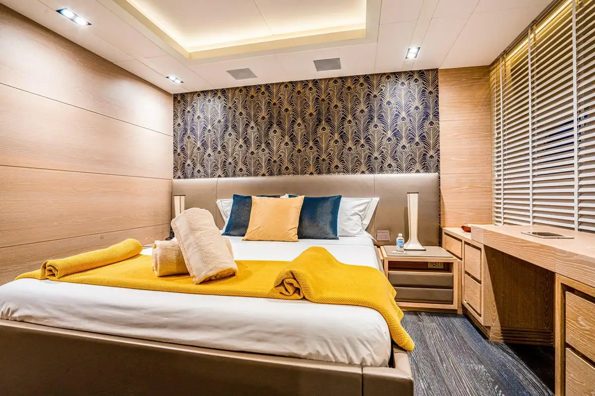 - Large owner's cabin on the main deck balcony and private access to the foredeck