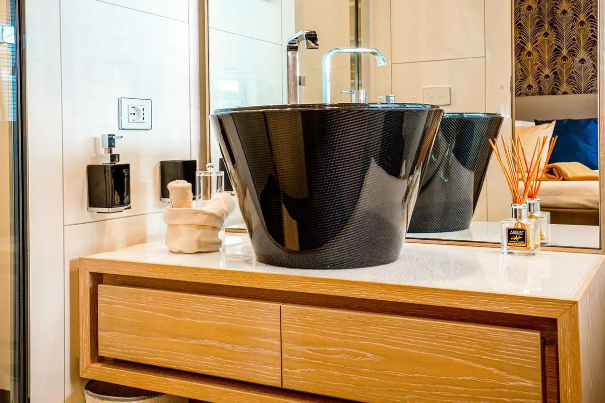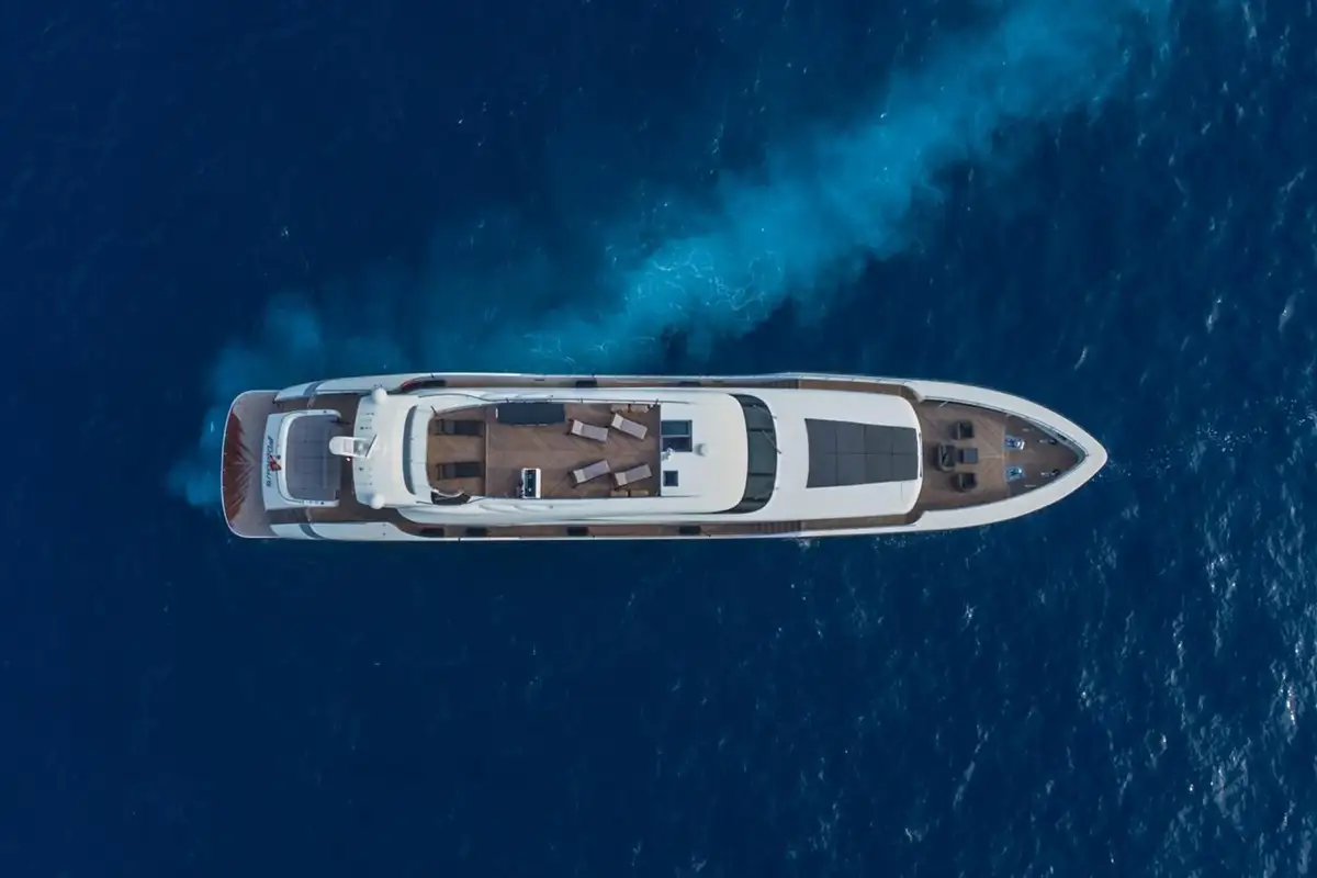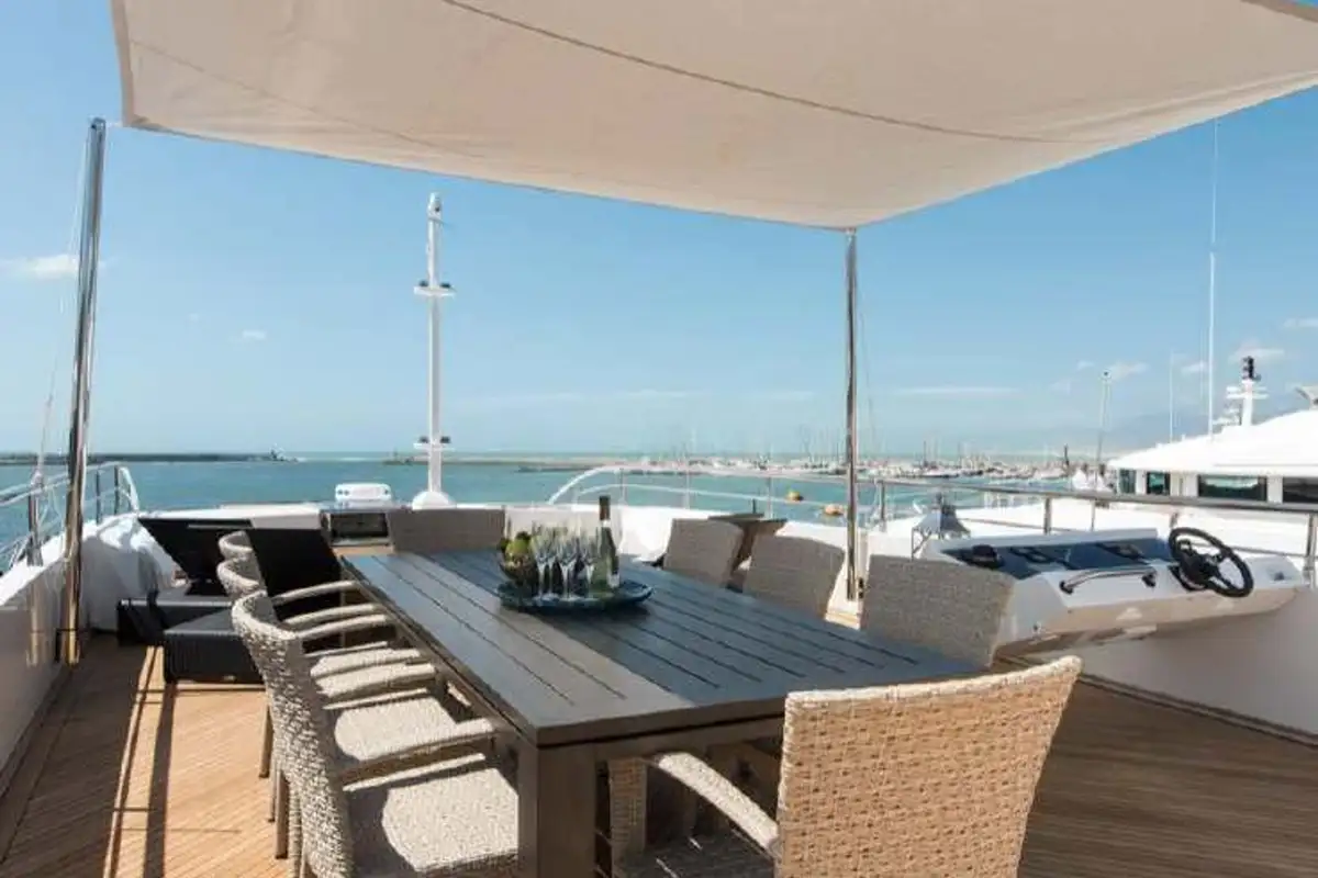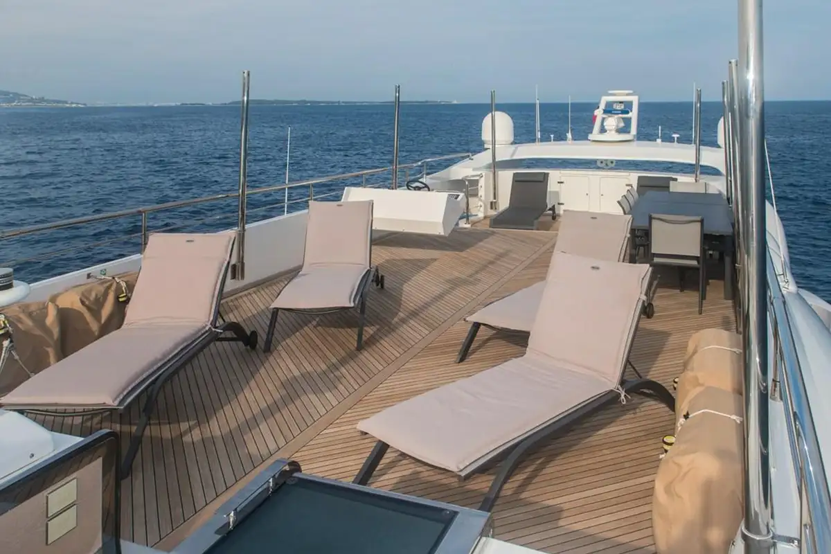 - Large owner's cabin on the main deck balcony and private access to the foredeck