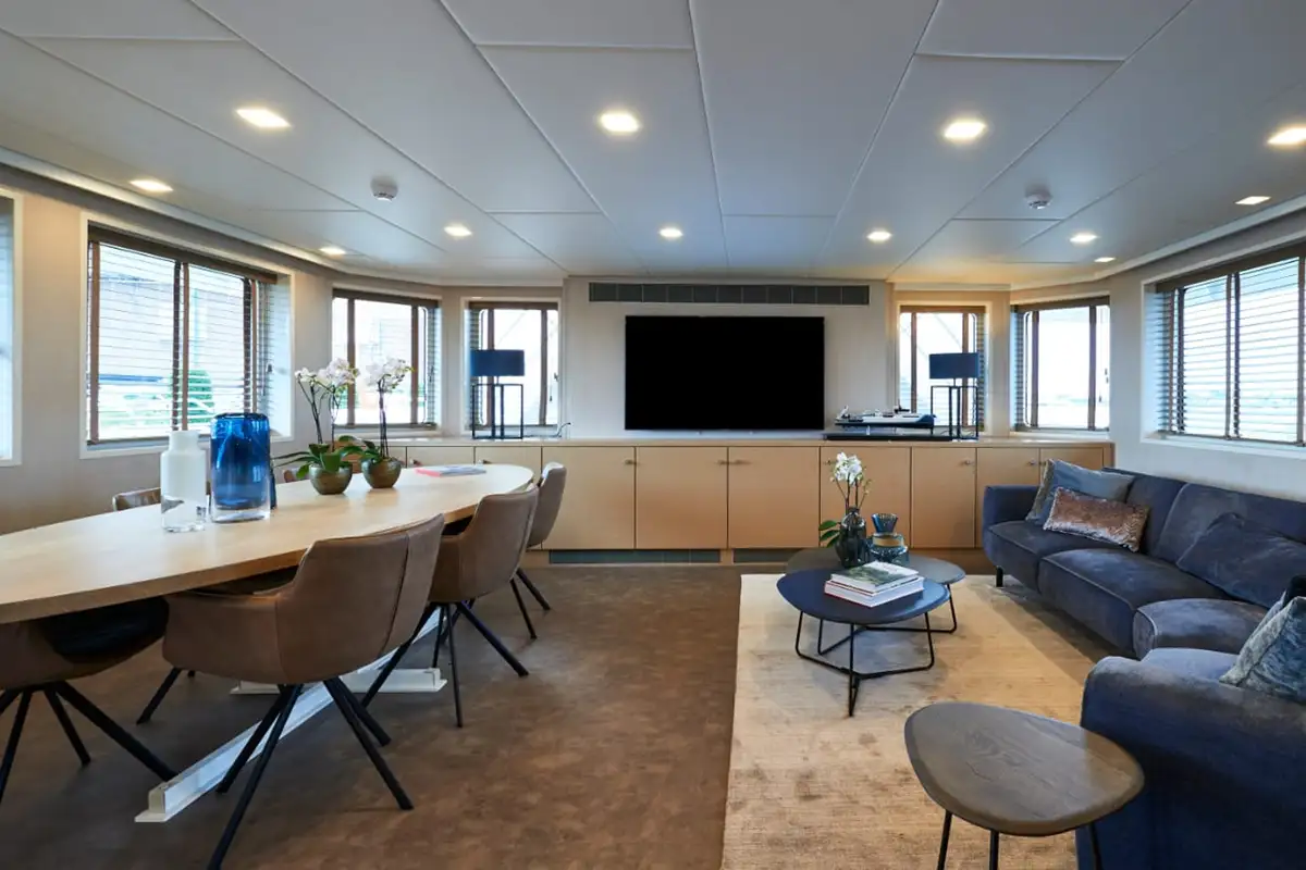 The versatile vessel sports a 225-square-metre deck, equipped with a 11.3-tonne capacity crane. To date, this space has been used to carry a 42-foot tender and additional landing craft, as well as a shipping container that holds an all-terrain vehicle and toys.