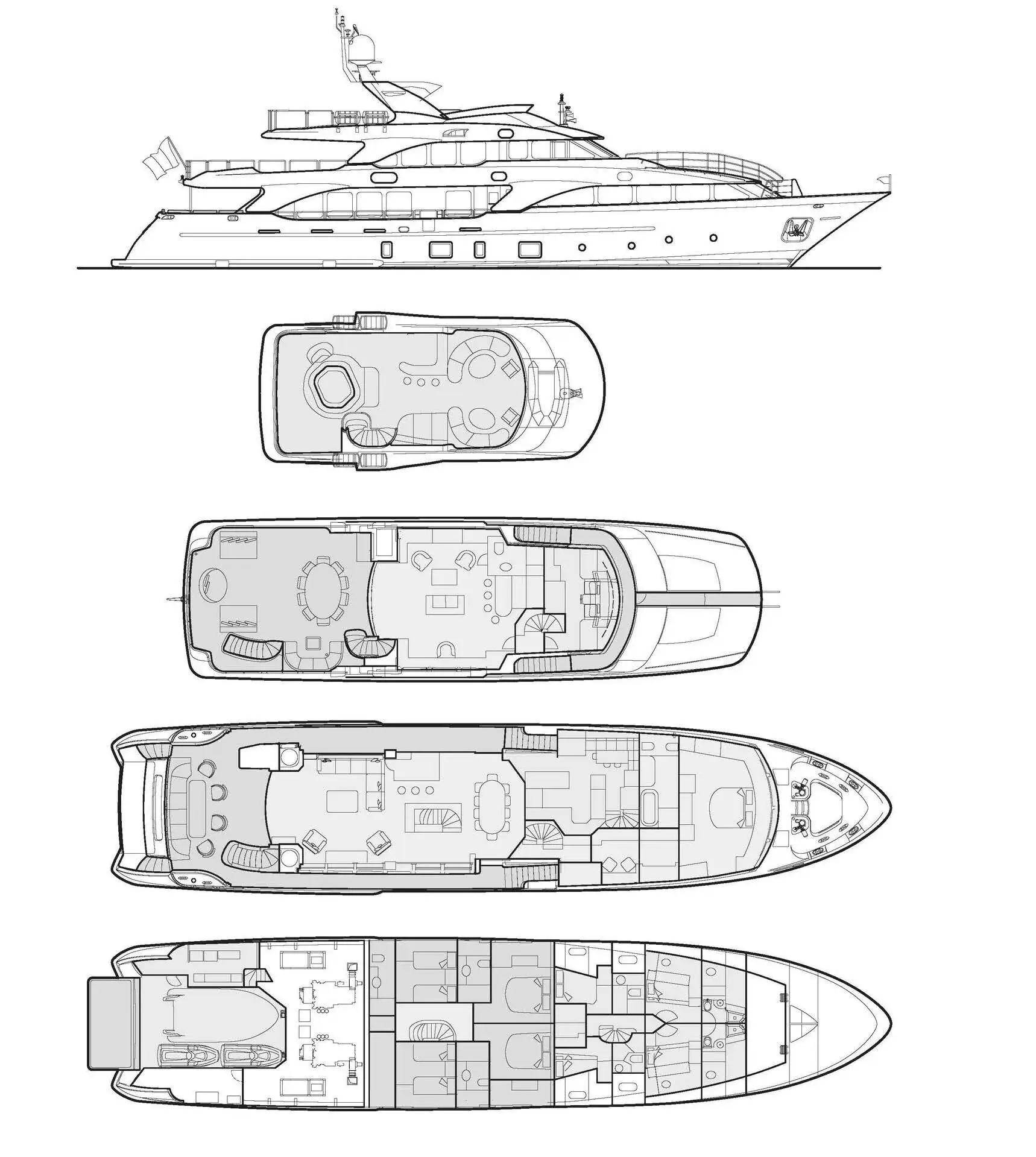 - Spacious sun deck with large Jacuzzi and row of sun loungers