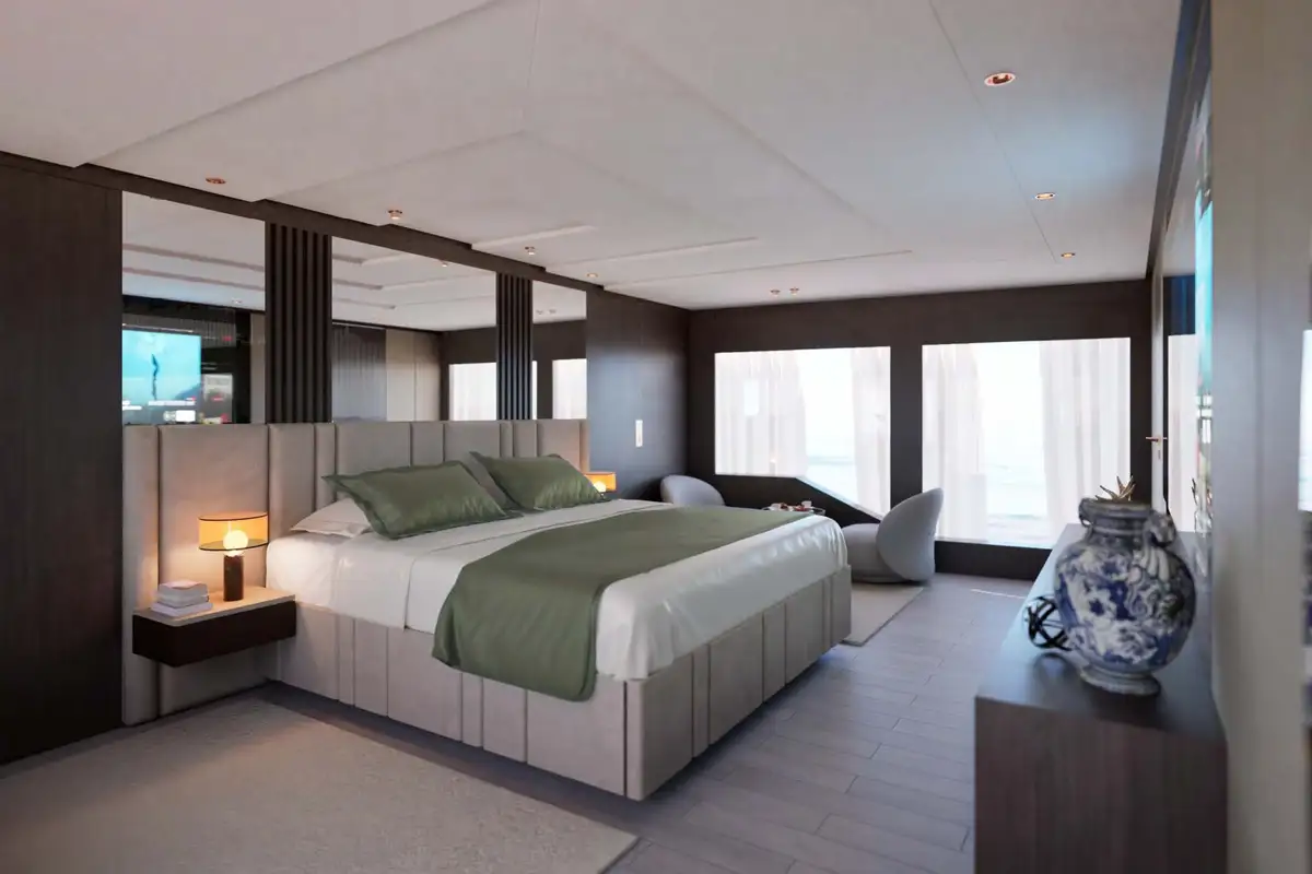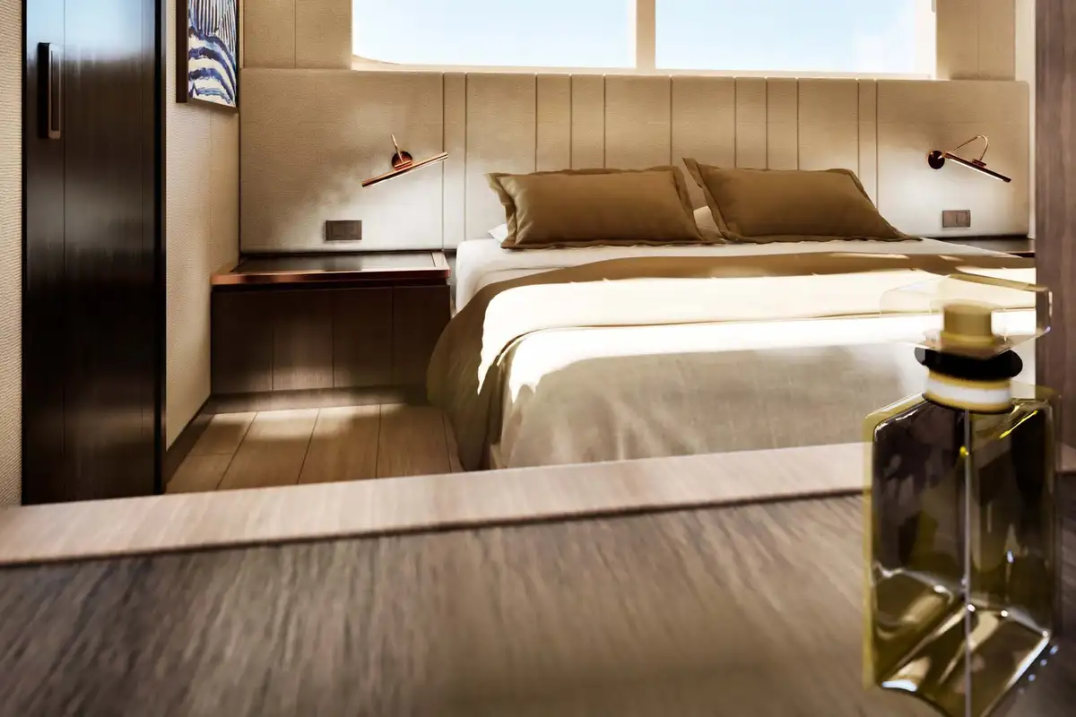 HARGRAVE 125 offers accommodation for up to 10 guests in 5 suites. She is also capable of carrying up to 7 crew onboard to ensure a relaxed luxury yacht experience. Its contemporary profile has been shaped with lowered bulwarks along the main deck and large skylights aft on the sundeck, drawing light down onto the bar area and loose lounge seating below. Exterior highlights include a plunge pool positioned on the aft deck, cleverly paired with a forward-facing seating area to create a natural social hub for guests.