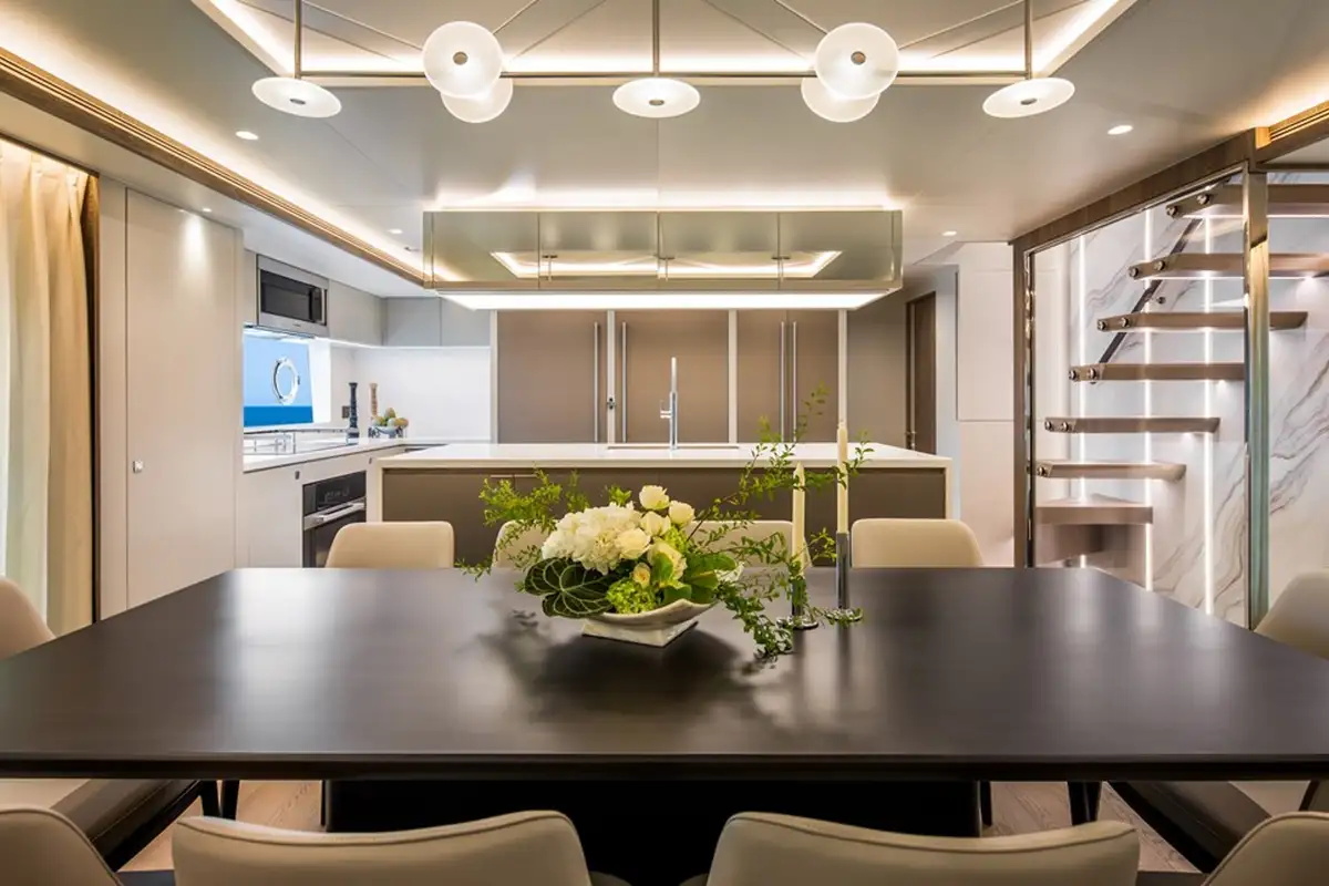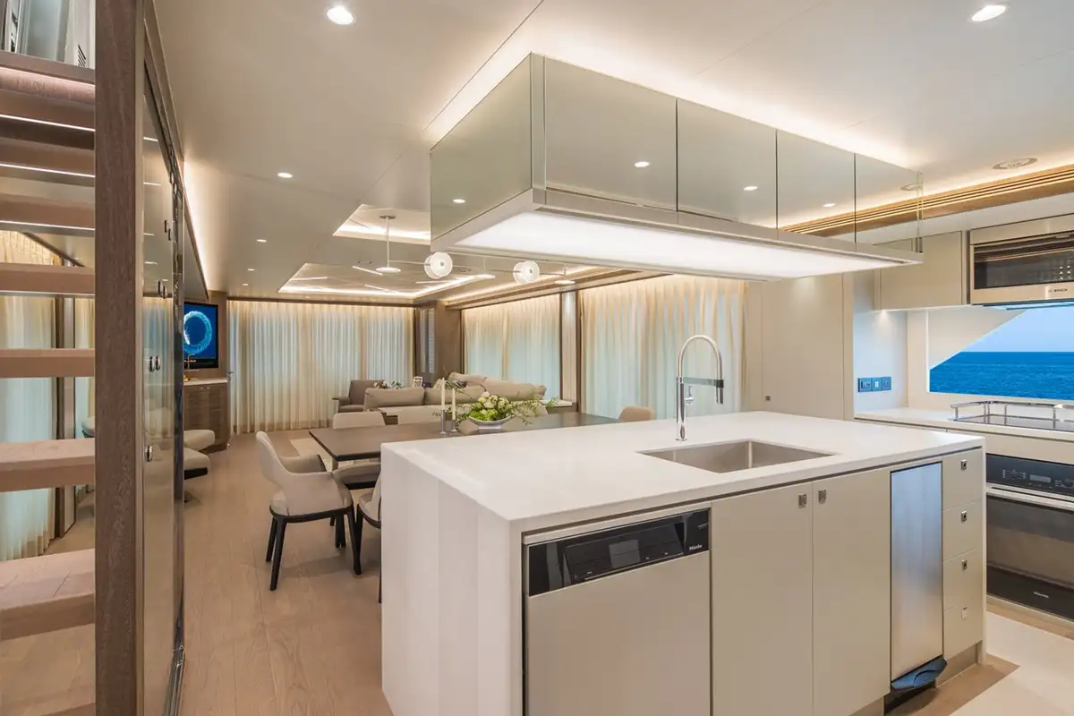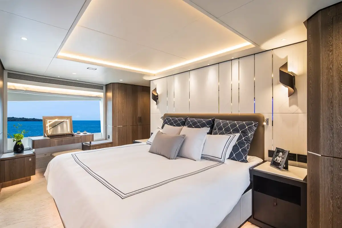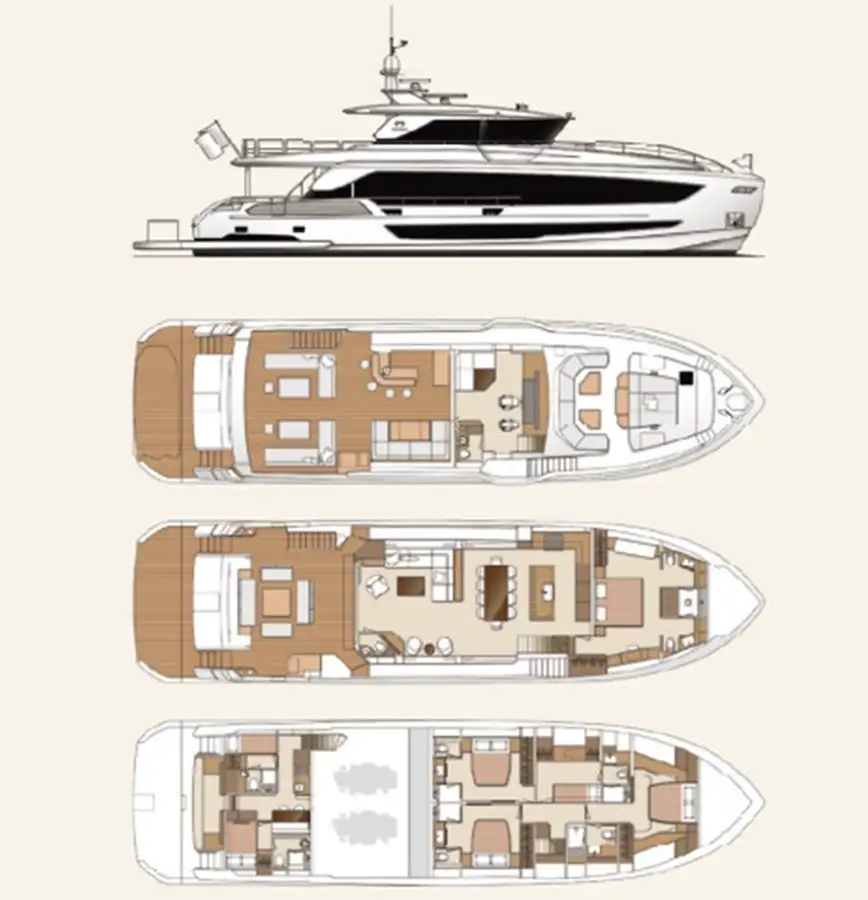 The most popular model in the acclaimed FD Series, the FD90 embodies the space, layout and performance that define the Fast Displacement range. The FD90 features an expansive 23’ 3” beam, spacious on-deck Master with four guest staterooms and two crew cabins below deck, and large windows in the salon. Fitted throughout with ingenious amenities and endless options for customization, the FD90 is quickly becoming one of the world’s most sought-after mid-range motor yachts.