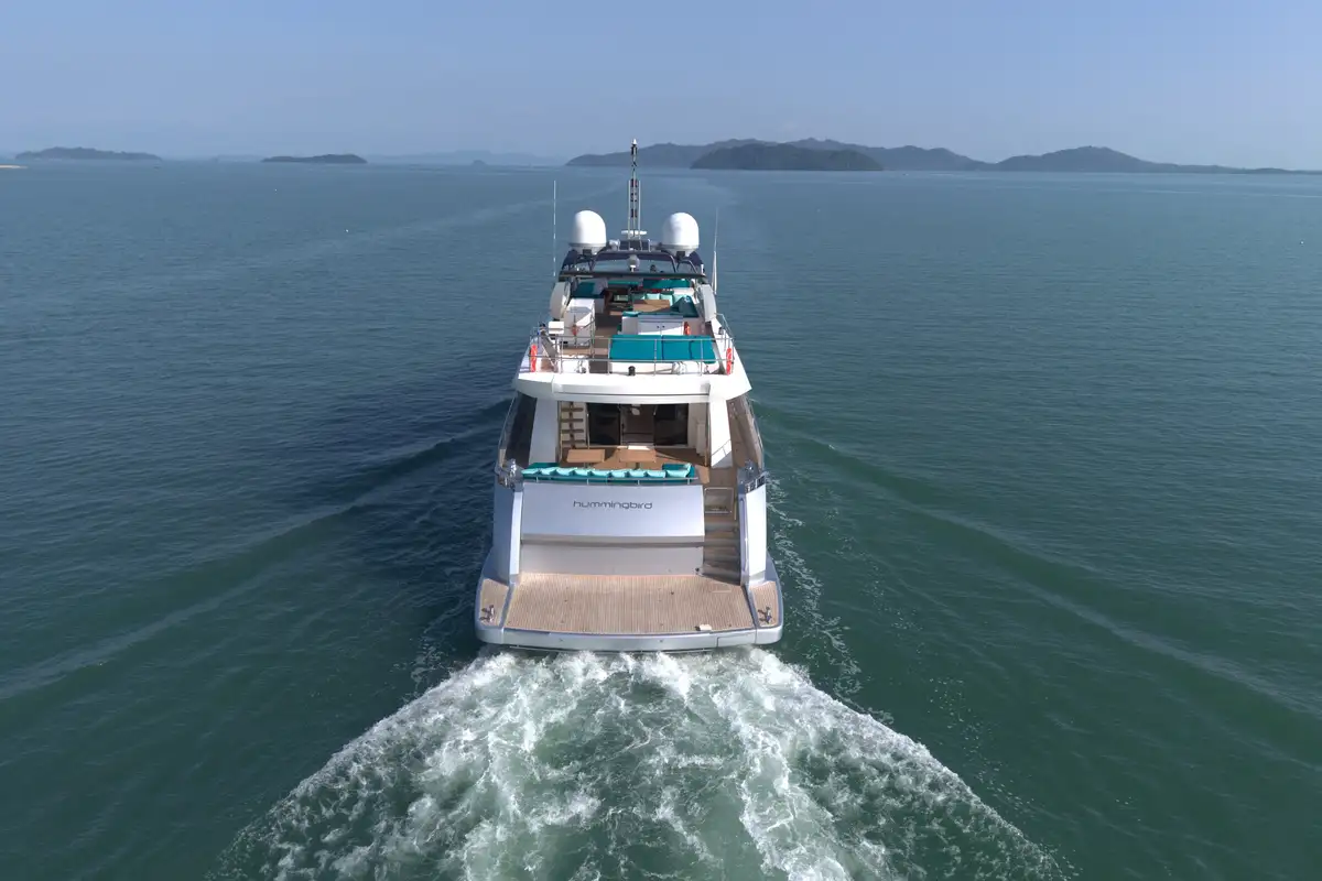 HUMMINGBIRD is a 30.4m (99.6ft) performance motor yacht of composite construction delivered in 2007 by Couach Yachts of France, to exteriors designed by the yard, minimalist interiors by Danielle Chopard and naval architecture by Exequiel Cano Lanza. Twin 2,450hp MTU diesel engines give her a top speed of 32 knots, a cruising speed of 25 knots and a maximum range of 800nm, making her ideal for island hopping in style.