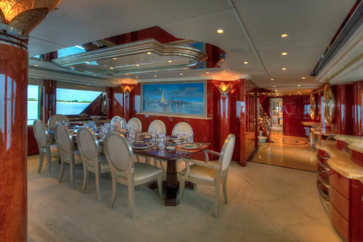The engineering and exterior design of I LOVE THIS BOAT are courtesy of the experts at Christensen. I LOVE THIS BOAT has a GRP hull and superstructure. She has a top speed of 15 knots and cruises at 10 knots; her range is 4,500 nautical miles courtesy of 11,500-gallon fuel tanks. I LOVE THIS BOAT is the perfect blend of luxury and top performance.
