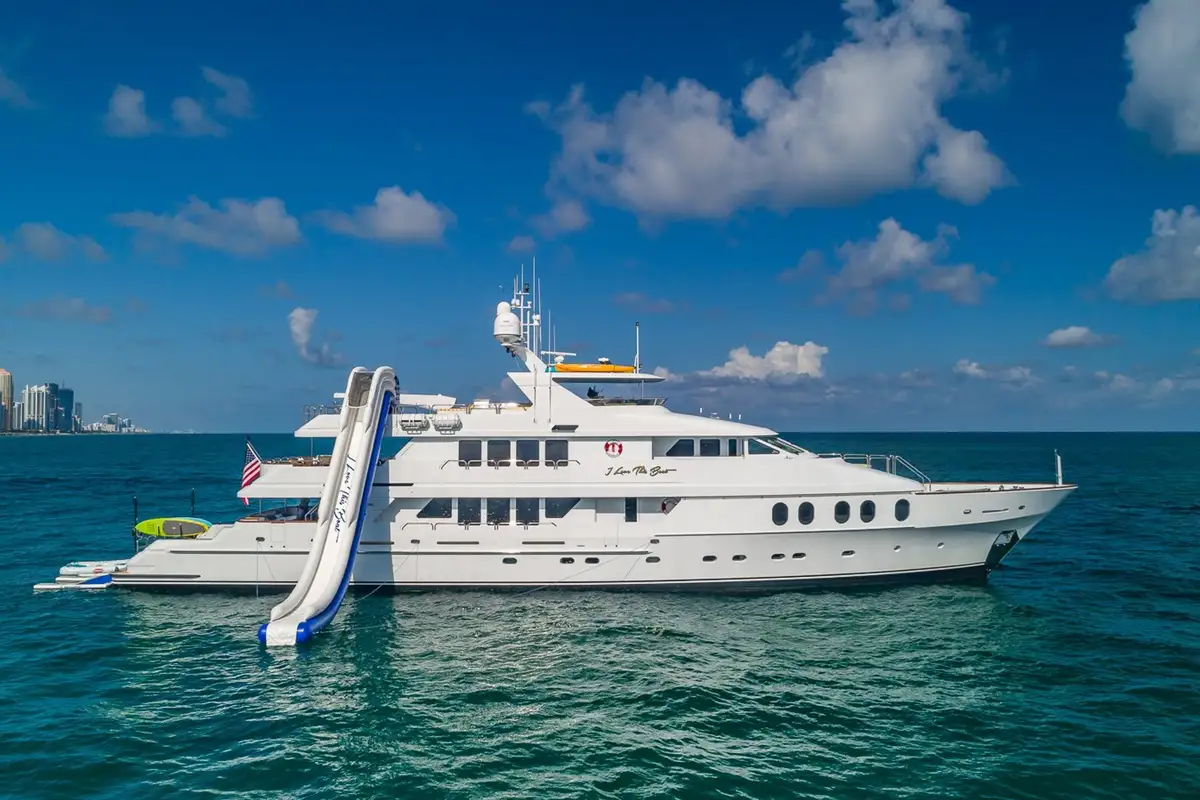 I LOVE THIS BOAT was built in 2002. She has received various refits throughout her life including new teak decks and new engines in 2012, new exterior sundeck cushions, a new air-conditioning unit, new mattresses, an upgraded entertainment system, including Crestron and new TVs, and the addition of a waterslide and sea scooters in 2017 and a new carpet and speakers in 2018. I LOVE THIS BOAT is in impeccable condition and presents beautifully.