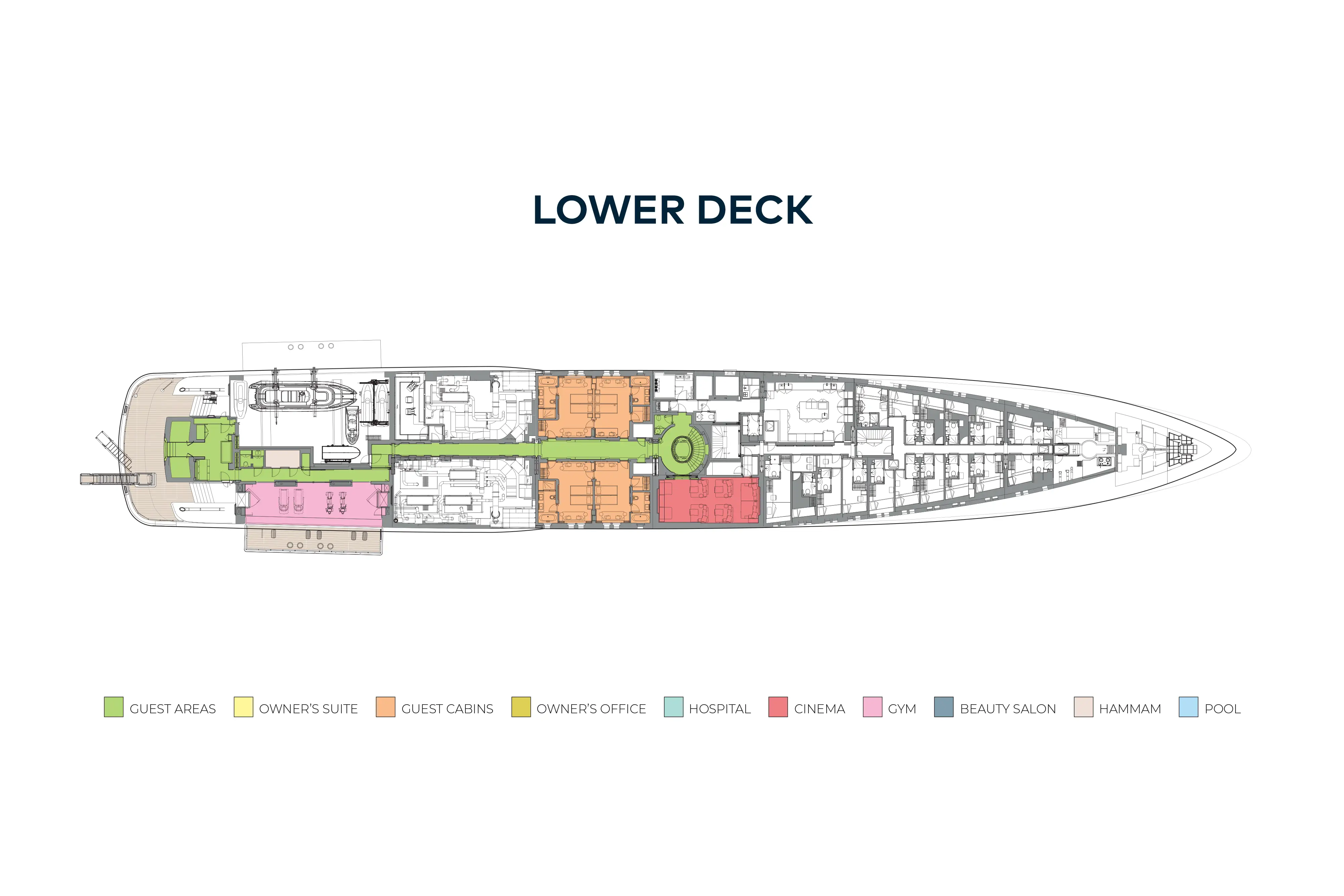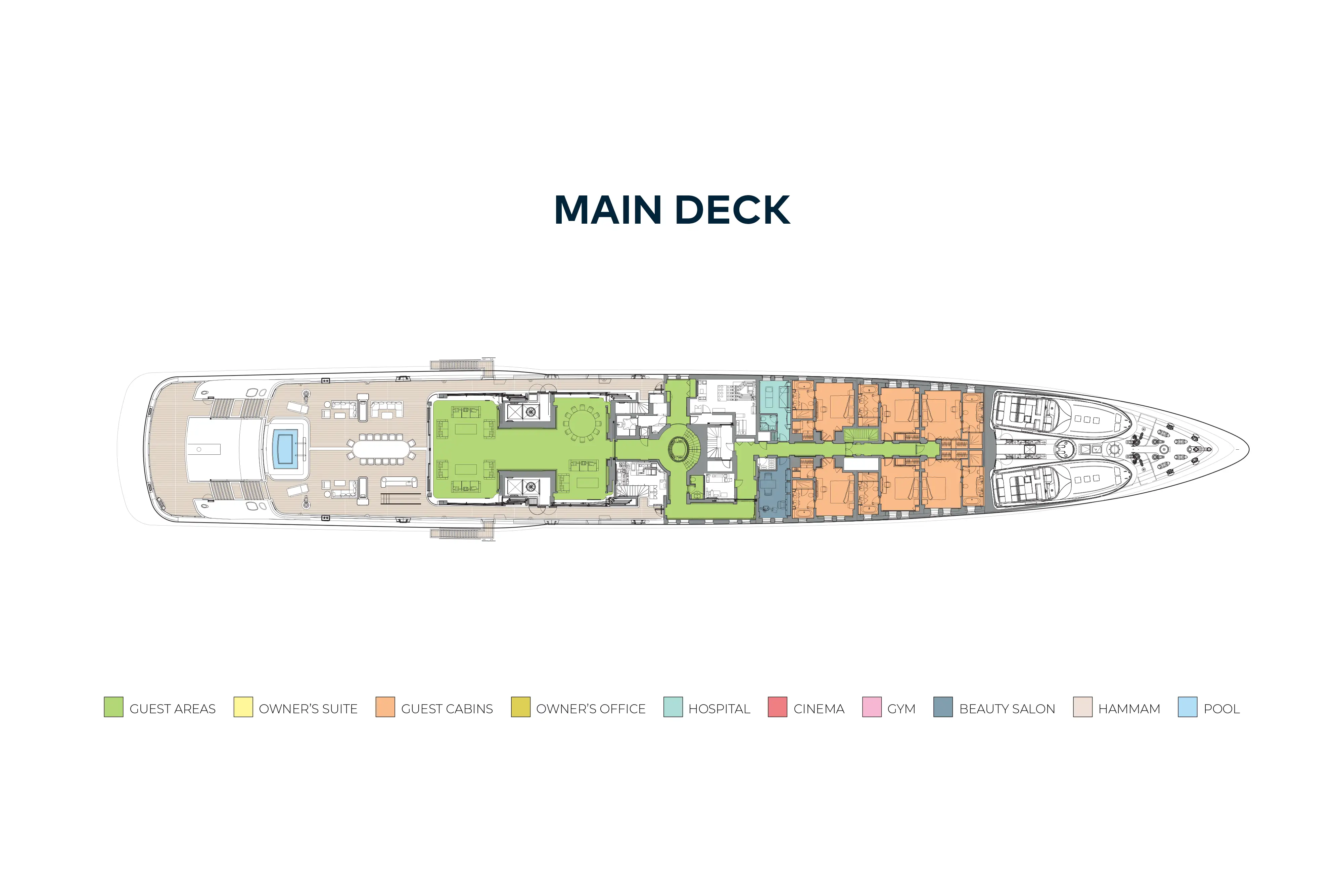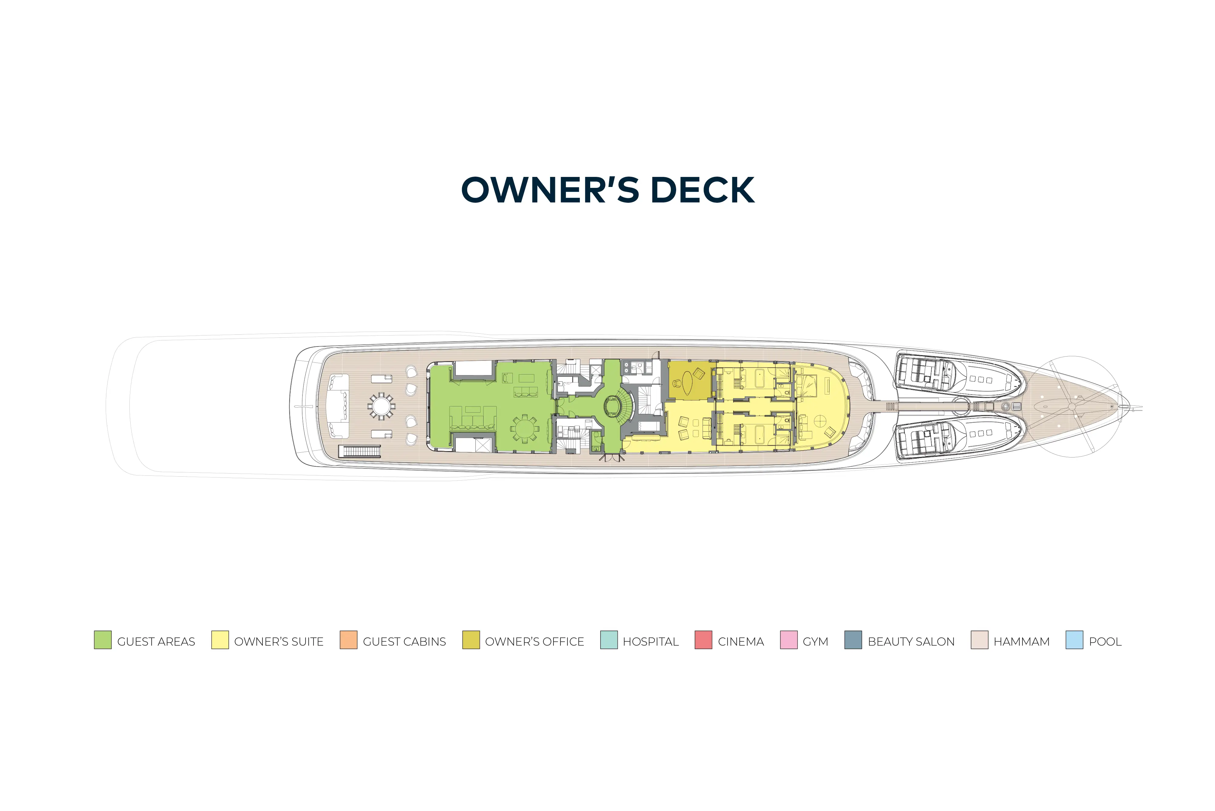 She is packed with unique features, including a main saloon with full-height sliding glass walls that open the space on three sides, a vast lower deck gym with sea terrace and foredeck stowage for two 12m (40ft) tenders - the gym and tenders are the among the largest on a yacht of this class.
