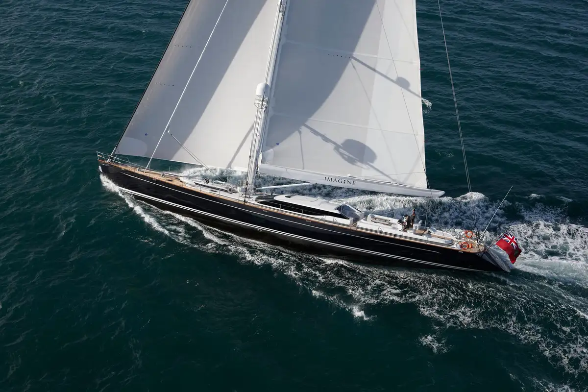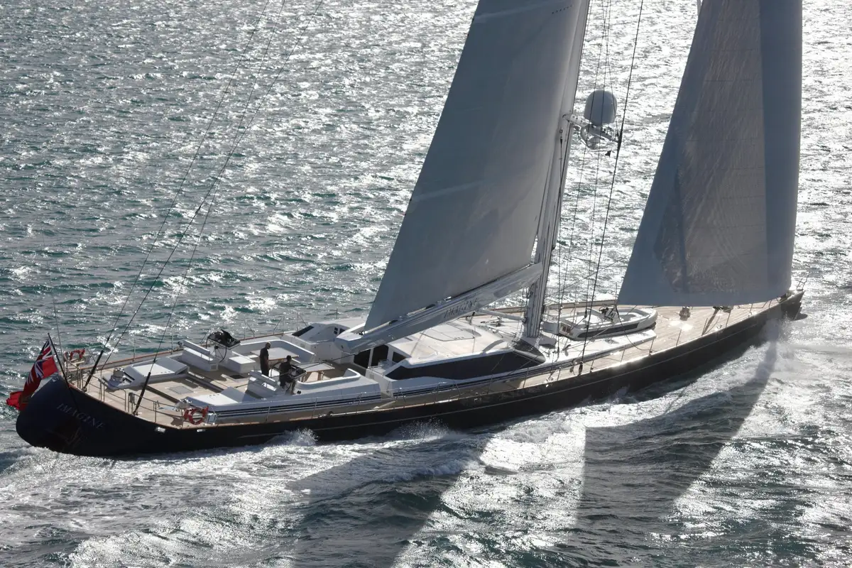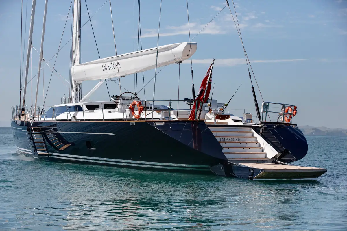 IMAGINE is a 44.2m (145ft) performance cruising yacht with an aluminium hull and superstructure constructed to Lloyd's classification by legendary New Zealand shipyard Alloy Yachts and delivered in 2010. Her signature sleek looks and engineering are by Dubois Naval Architects, her interiors are by Misa Poggi and she was most recently refitted in 2020.
