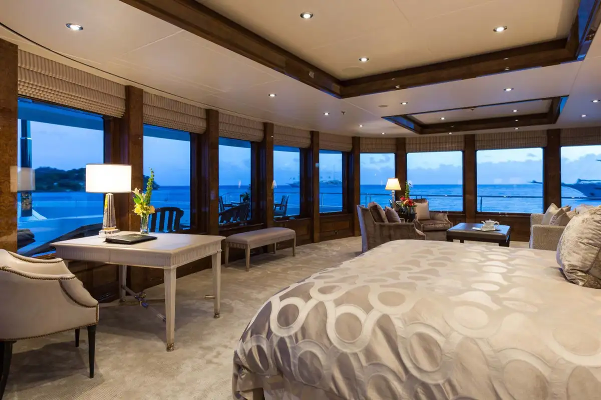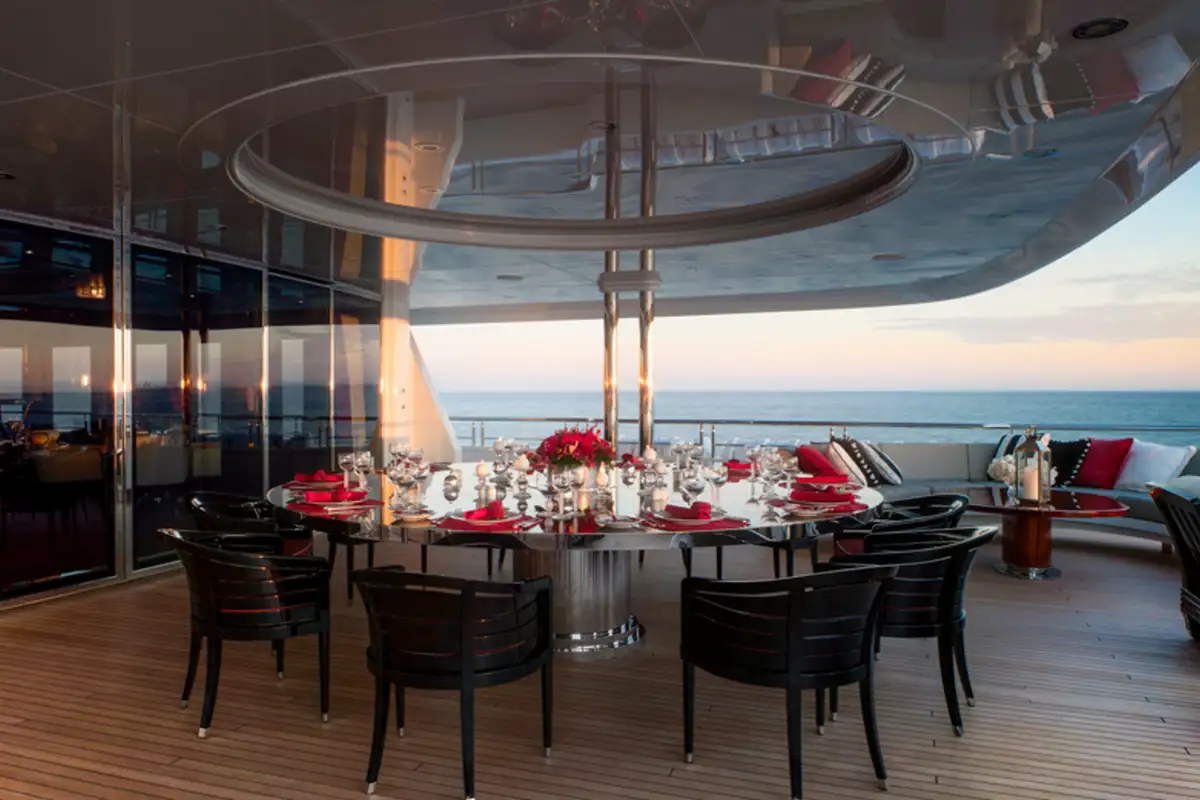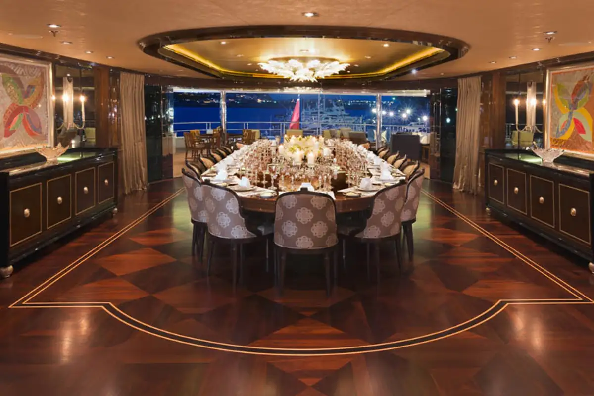 On board INVICTUS entertainment is key, with a bar on every deck. Sit down to formal dining with 20 guests and enjoy 180-degree sliding glass doors, leading out to wonderful seating areas and a magnificent Lalique bar. When it’s time to party the sky lounge converts to a Parisian-style nightclub.