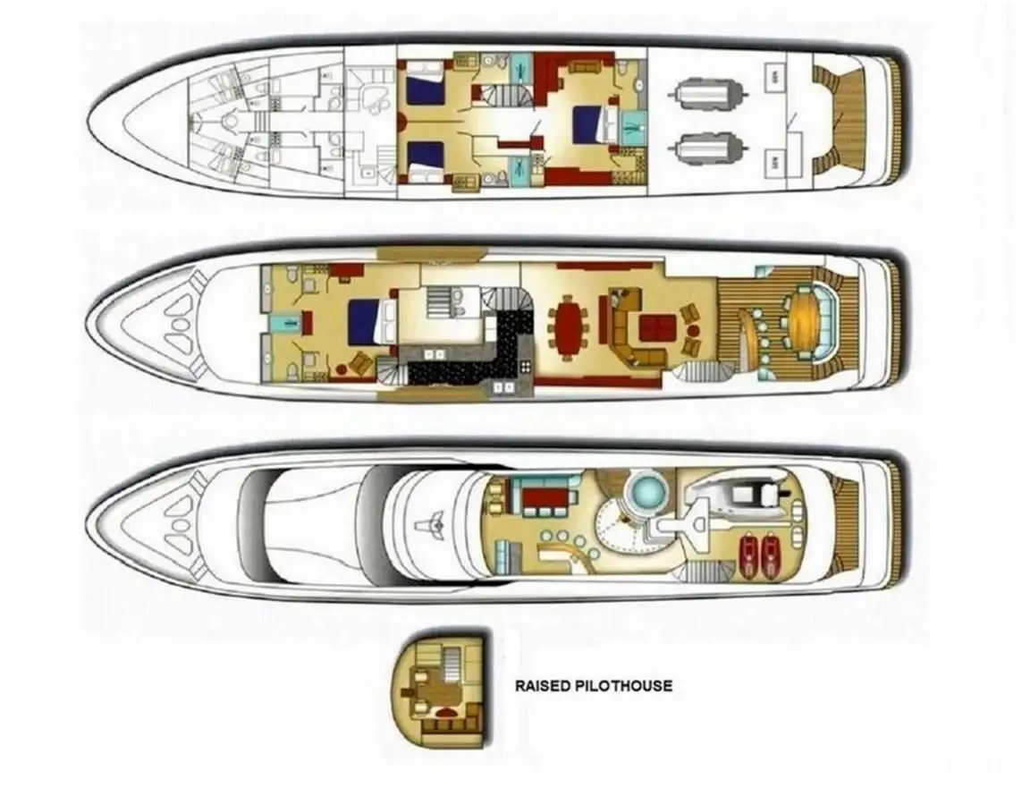 - Boat deck features stowage and crane for a 5.2m (17ft) Boston Whaler tender and two SeaDoo PWCs