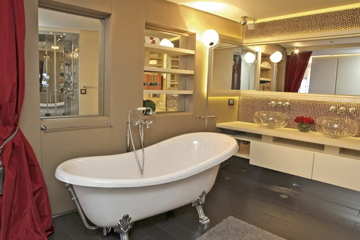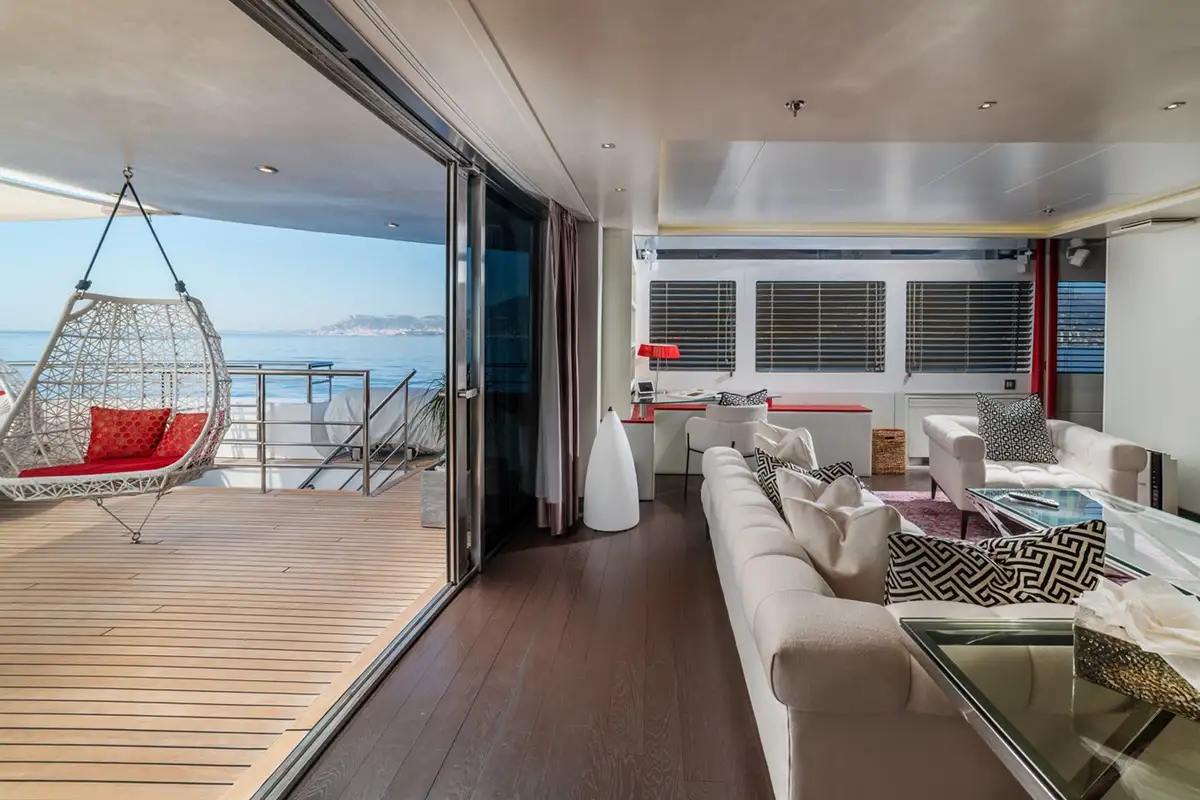 A stunning blend of style and sophistication, JOYME’s spectacular interior was created by Marjana Radovic from Standby Studio. White walls are paired with contemporary furnishings for dramatic effect while over-sized windows fill the space with light. On the main deck, an open-plan salon and bar area are designed for socialising while the formal dining room is ideal for entertaining. On the upper deck, a fabulous sky lounge offers comfortable seating plus a full entertainment system. Lower deck is dedicated to relaxation with a fully-equipped gym and spa featuring a sauna and hammam.
