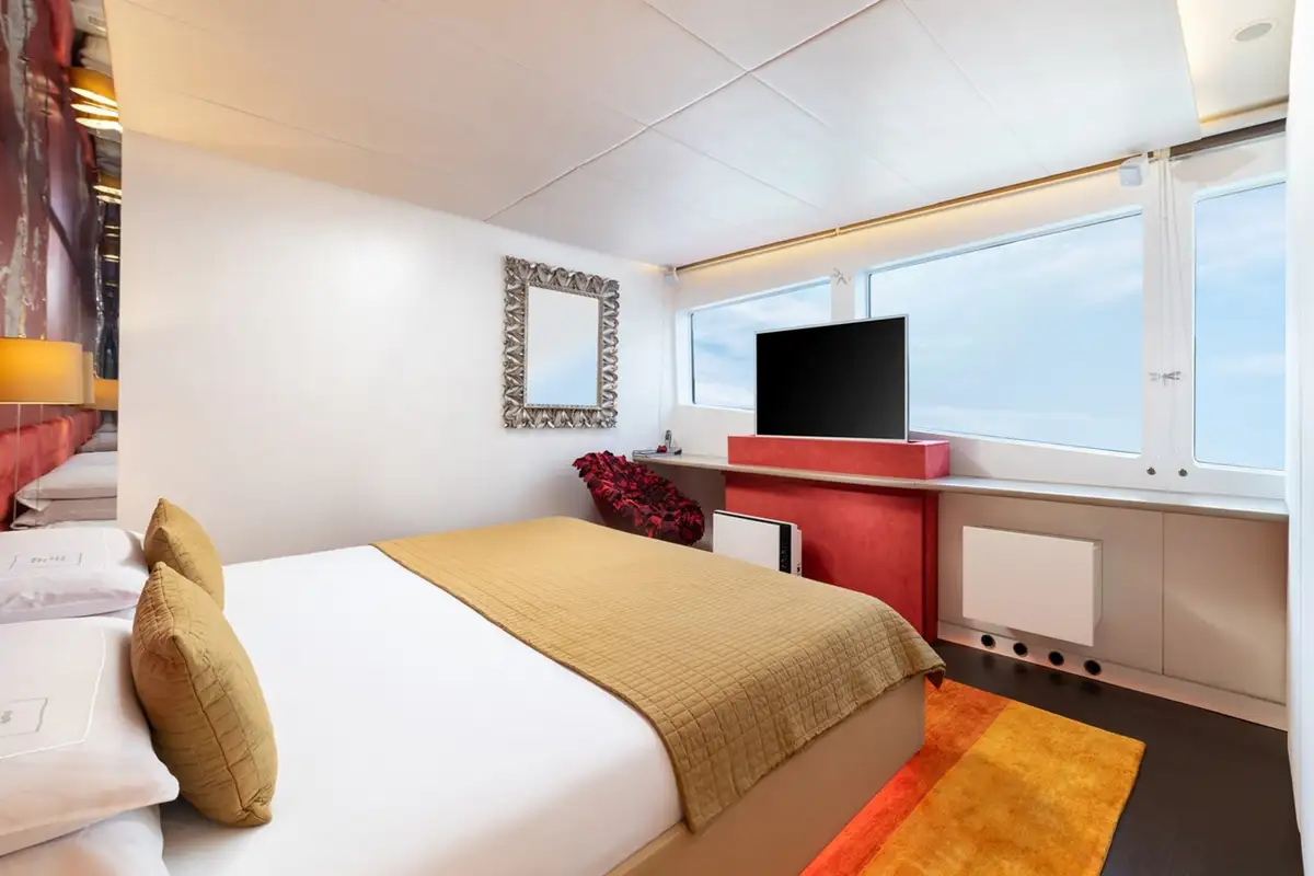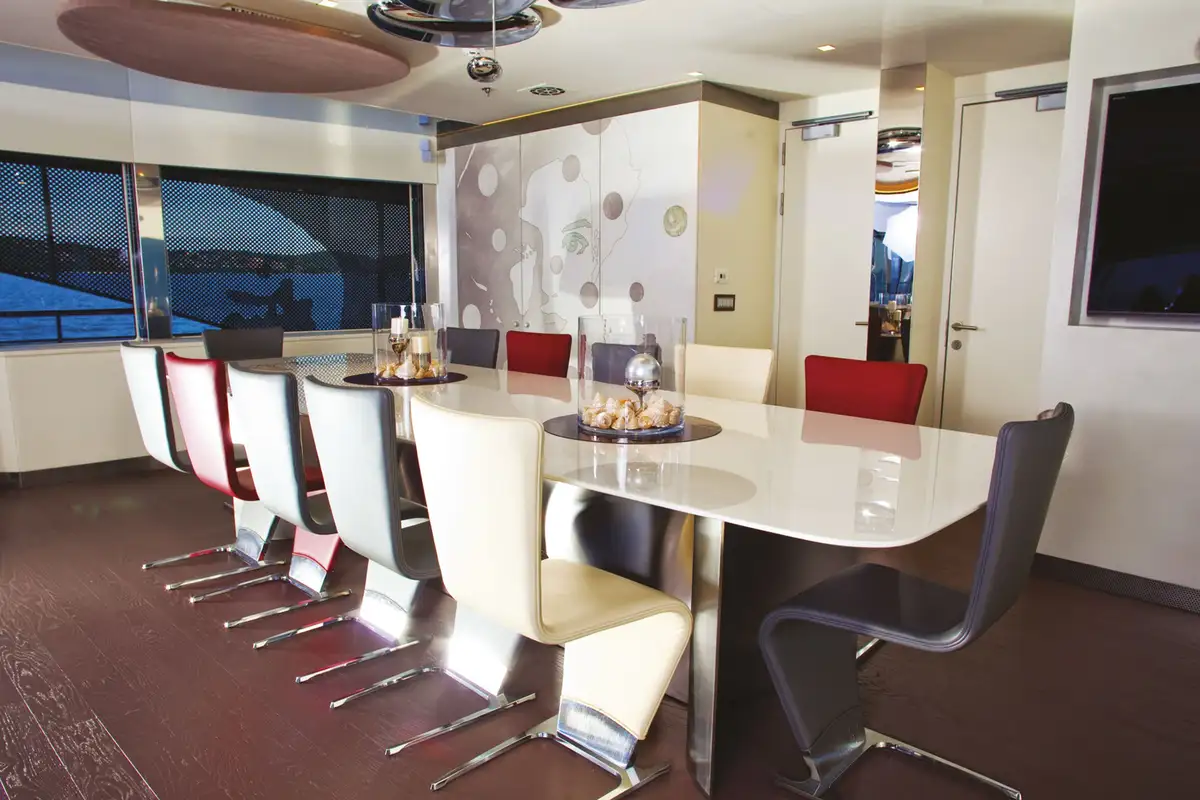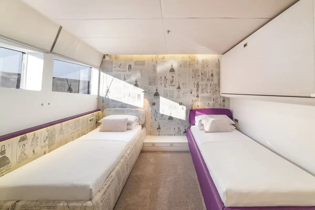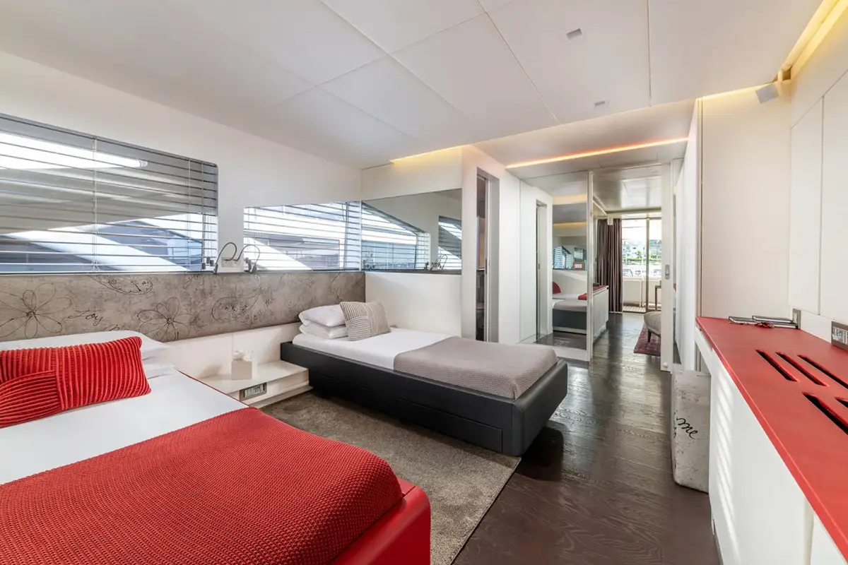 Stylish JOYME has six generously-sized cabins including a master suite, a VIP suite and four double cabins. Each of the cabins is tailored around an individual theme, fusing pop art with bright colours and contemporary furnishings. Spacious and versatile, JOYME can accommodate up to 12 guests onboard overnight.