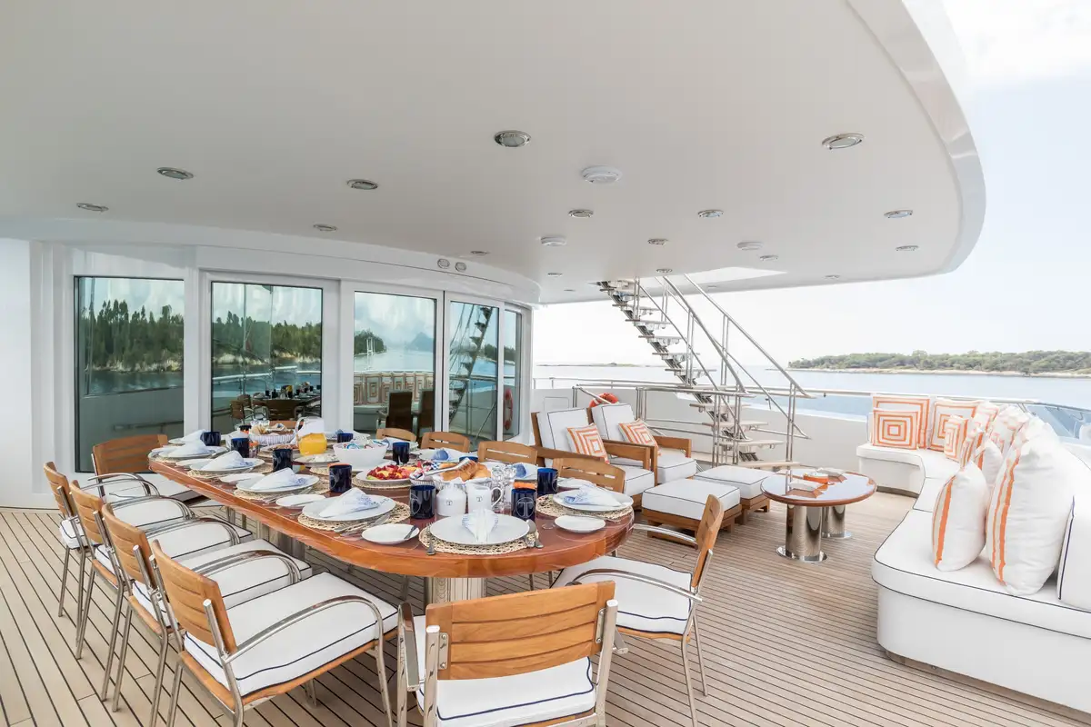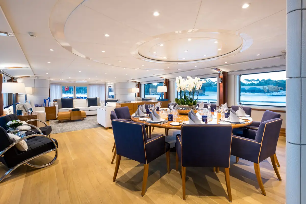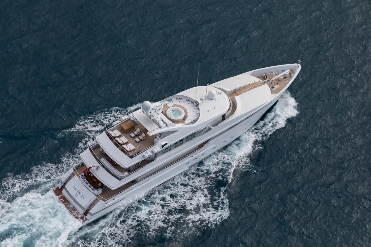 With a generous gross tonnage of 640GT, LA TANIA accommodates up to 11 guests in five well-appointed cabins, including a spacious main deck owner’s suite with a private office and a desirable triple guest cabin. Expansive exterior spaces, including a large sun deck and multiple lounging areas, provide the perfect setting for relaxation and entertaining, while a well-equipped garage houses a wide array of water toys, ensuring an outstanding on-water experience.