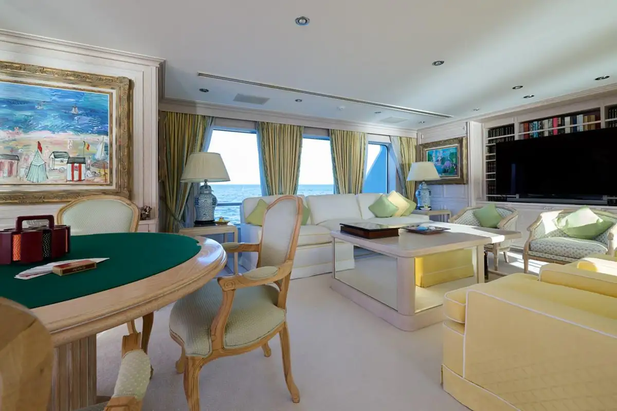 The classically styled, Jon Bannenberg-designed interior is immaculate and original. Her generously proportioned internal spaces are bright, elegant and sumptuously comfortable throughout. The layout is roomy and flexible, designed to host up to 16 guests in eight cabins including two large and separate master suites at the forward end of the main deck. With 17 crew, attentive service at all times is assured.