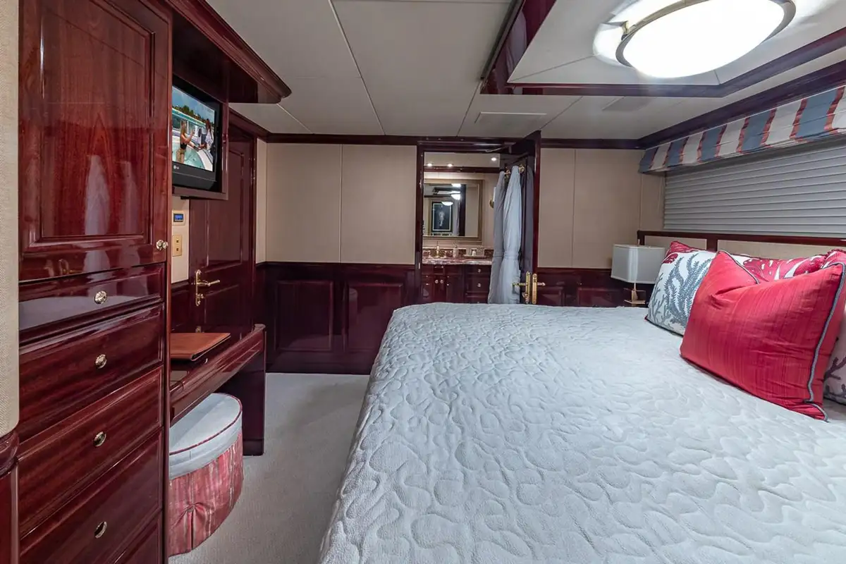 • Two full-beam cabins including the master and VIP with en suite and jacuzzi baths