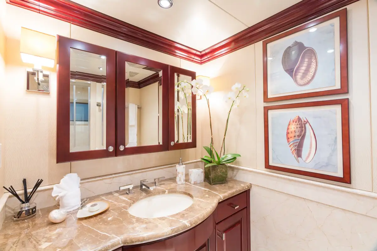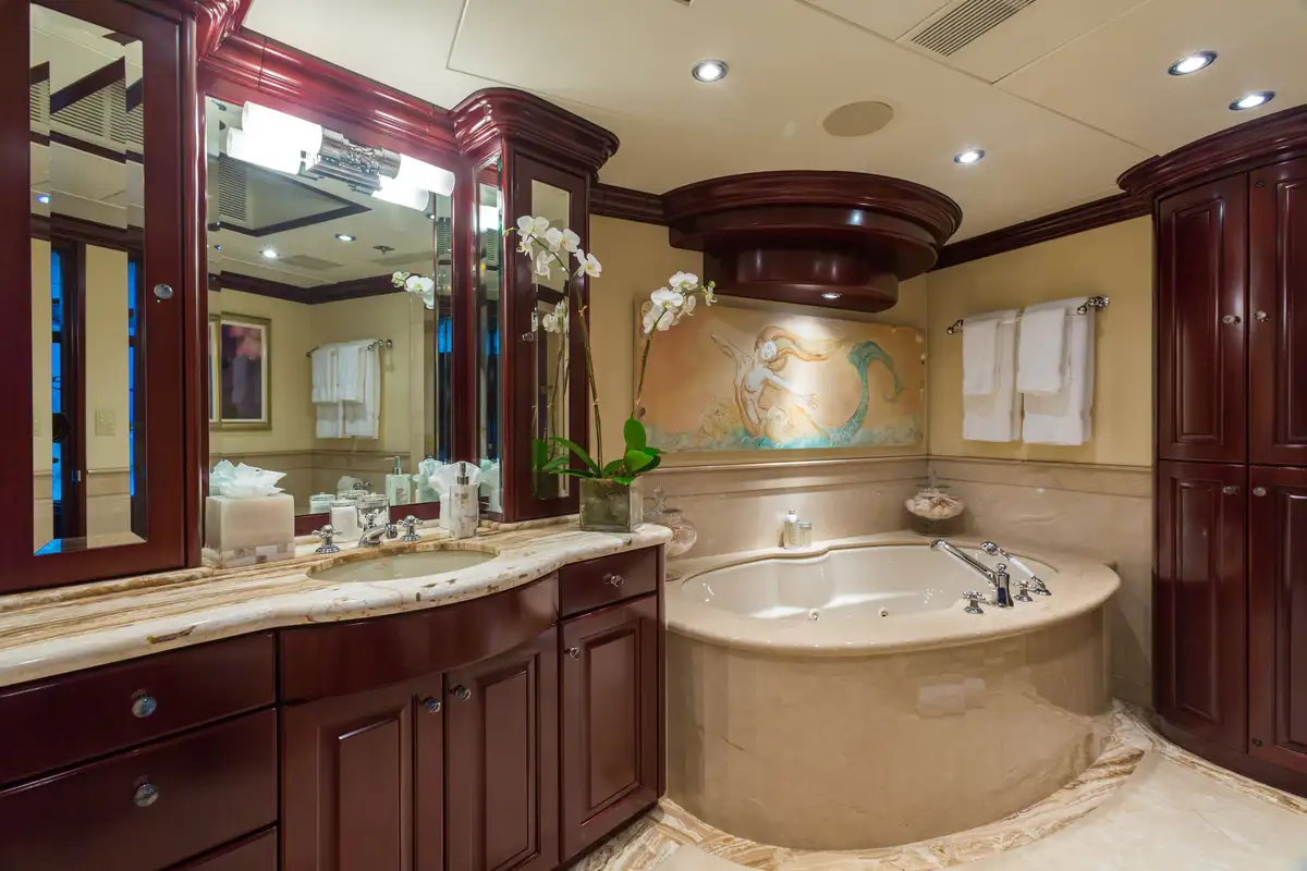 LADY JOY is a beautiful delivery from the respected Pacific Northwest builder - Christensen Shipyard. This particular Christensen can uniquely sleep 16 guests in seven cabins, or can alternatively sleep 14 guests in six cabins with sleeping arrangements for two extra (often needed) crew. The interior was designed by Carol Williamson, and includes an elevator serving all decks. Zero speed stabilizers ensure maximum comfort for guests on board.
