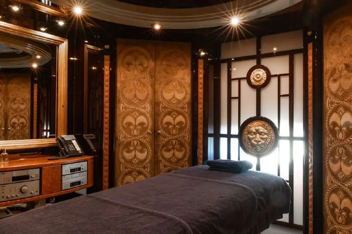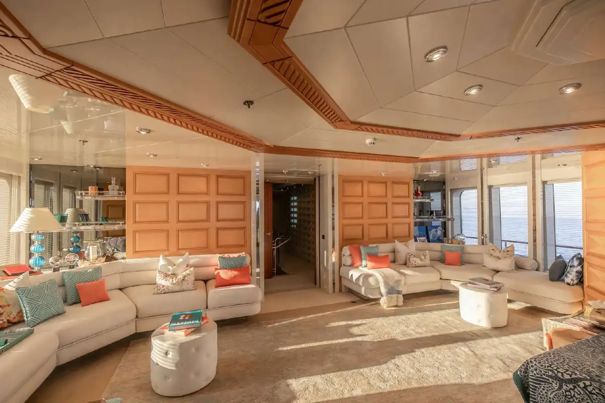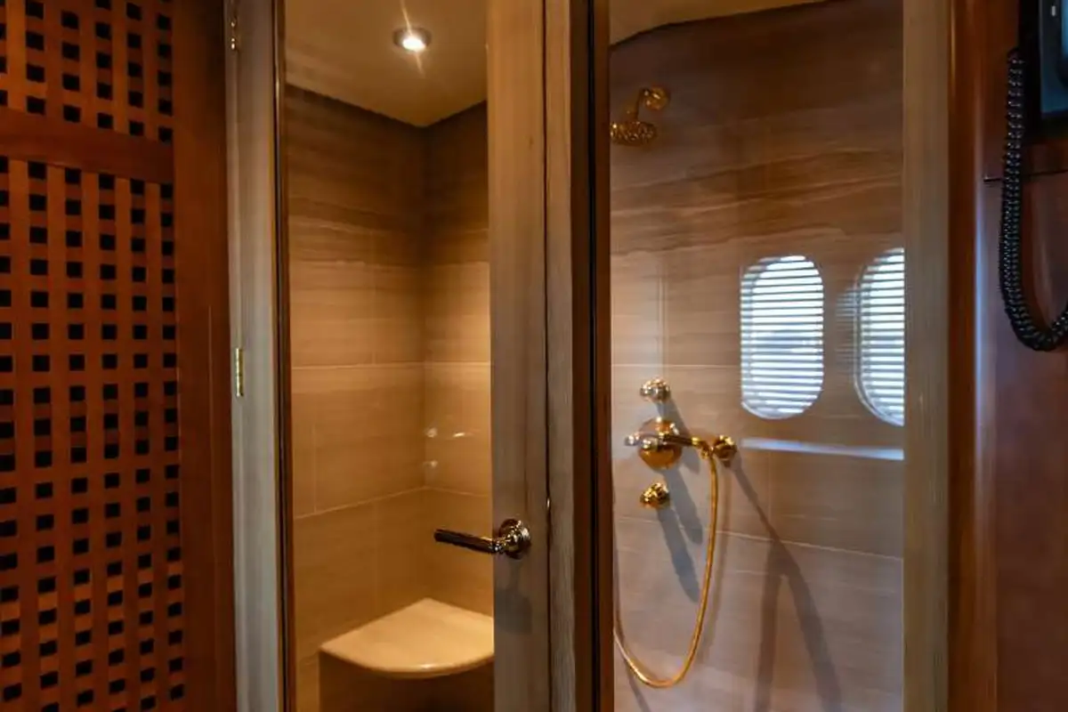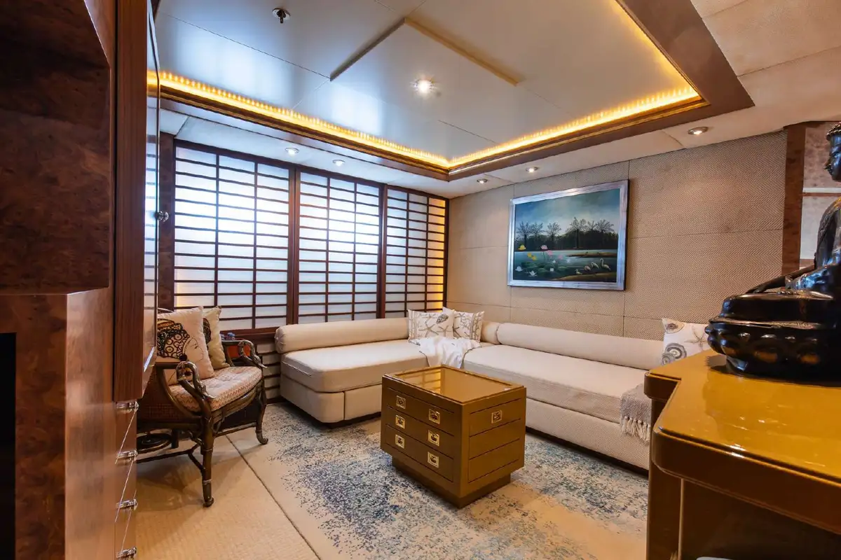 LADY MARINA is tailored for both elegant entertaining and extended cruising, accommodating up to 15 guests in a flexible layout of nine cabins. The spacious owner’s suite, located on the main deck, features a private office, gym, spa, his-and-hers dressing rooms, and an adjoining guest cabin. The remaining guest accommodations are located on the lower deck, each with a private en suite.