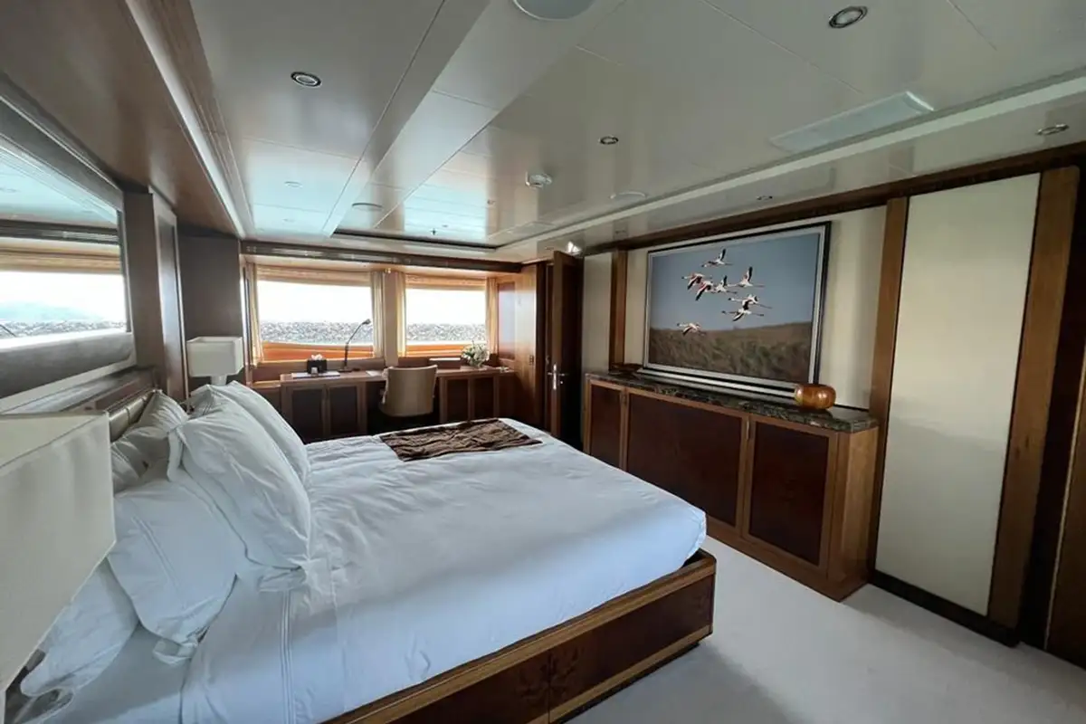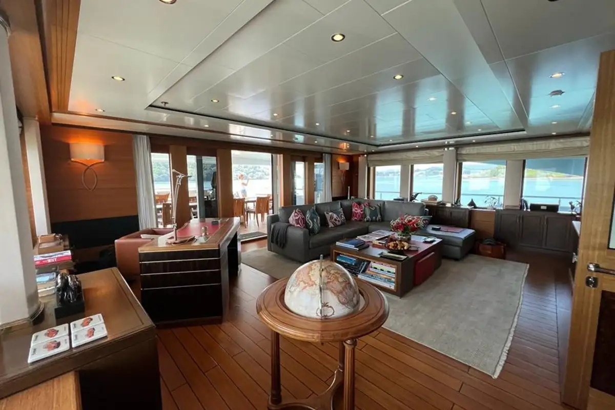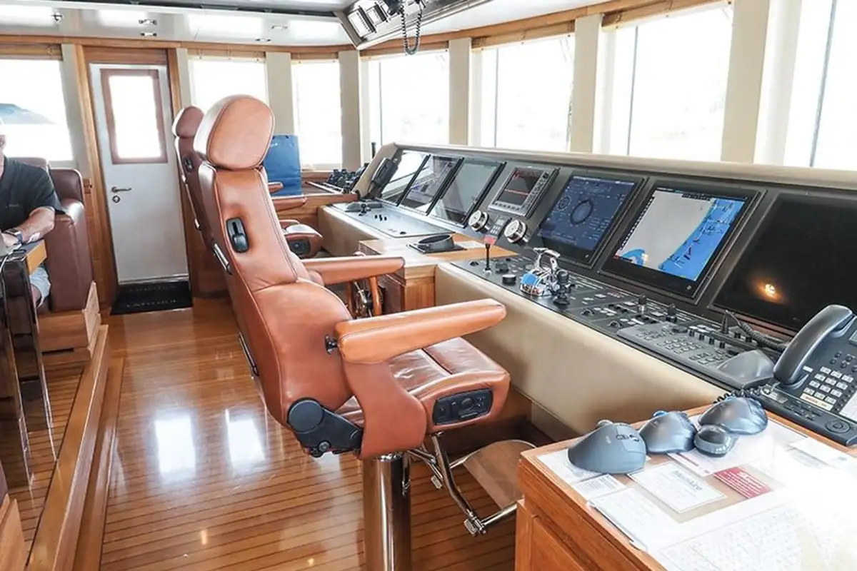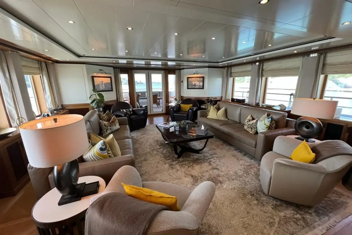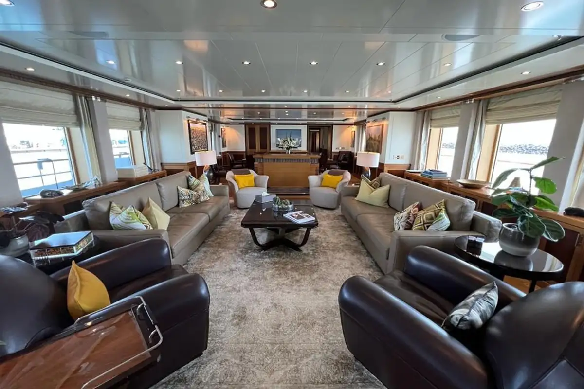 With a steel hull and aluminum superstructure, a cruising speed of 12 knots, and a 3,800-nautical-mile range, she seamlessly blends strength with comfort.