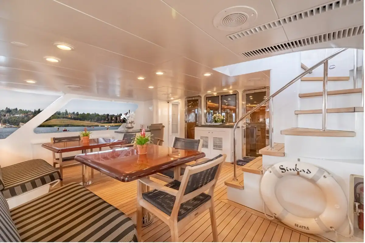 A 40-metre (130ft) semi-displacement yacht with three decks of accommodation, SINBAD was custom built in fibreglass by Hatteras in 1995. She has been regularly updated with interior, exterior and mechanical refit work throughout the last seven years.