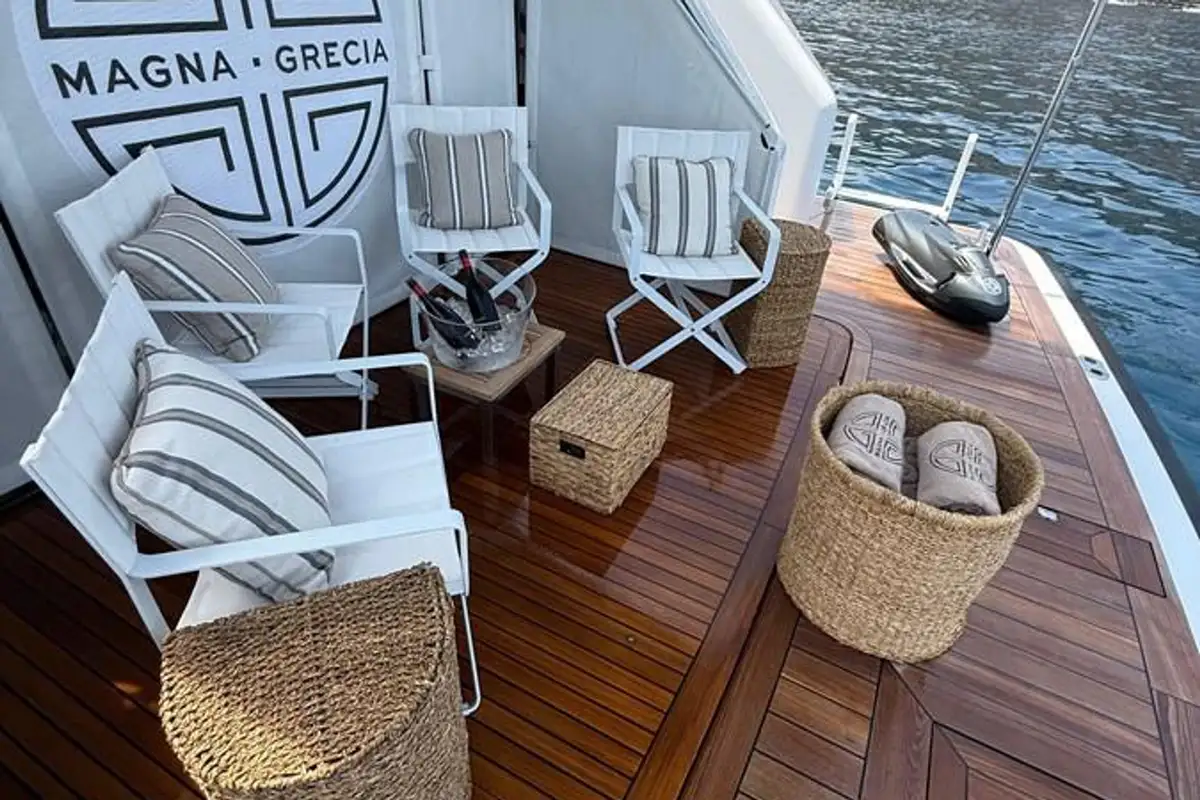 The 63.8m (209.3ft) MAGNA GRECIA has a steel hull and aluminium superstructure built to Bureau Veritas classification and MCA compliance, and delivered in 1986 by the iconic German shipyard Elsflether Werft. Following an award-winning 24-month rebuild and refit that finished in 2019, she is an in-demand, Greek-licensed Burgess charter yacht.