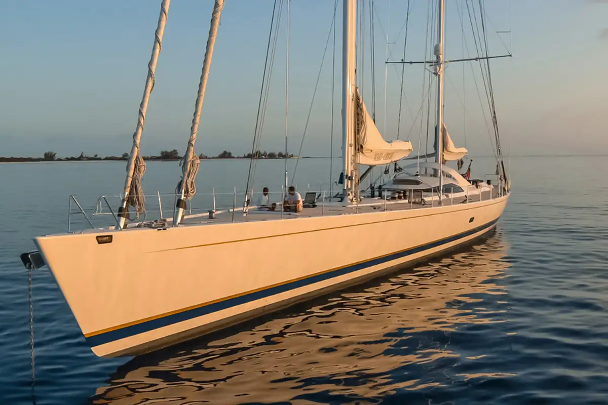 MARI CHA III is a 44.7m (146.7ft) performance sailing yacht built by Sensation Yachts in New Zealand and delivered in 1997. Designed by Philippe Briand, she seamlessly combines world-class racing pedigree with luxurious liveaboard comfort. A carbon composite sandwich hull ensures lightweight performance without compromising strength or onboard stability, making her ideal for both competitive sailing and extended cruising.