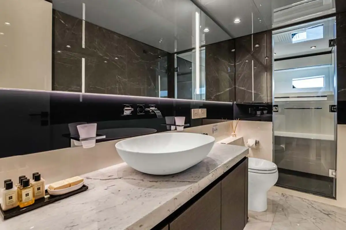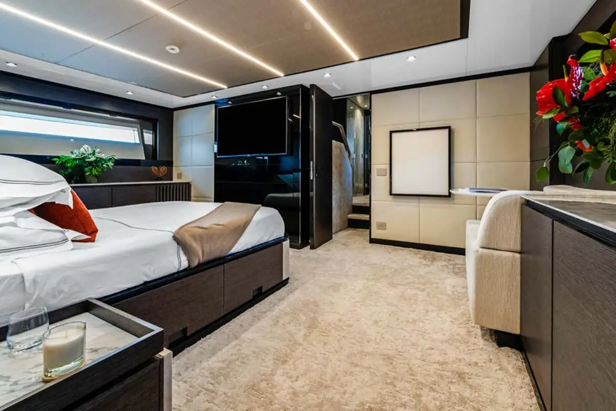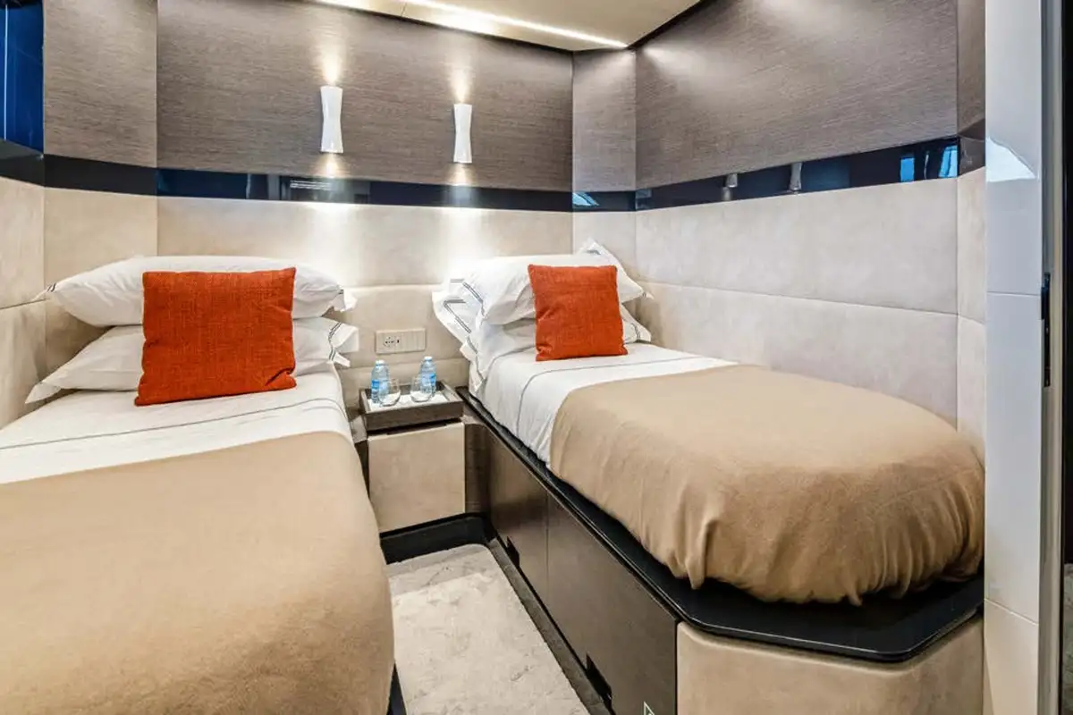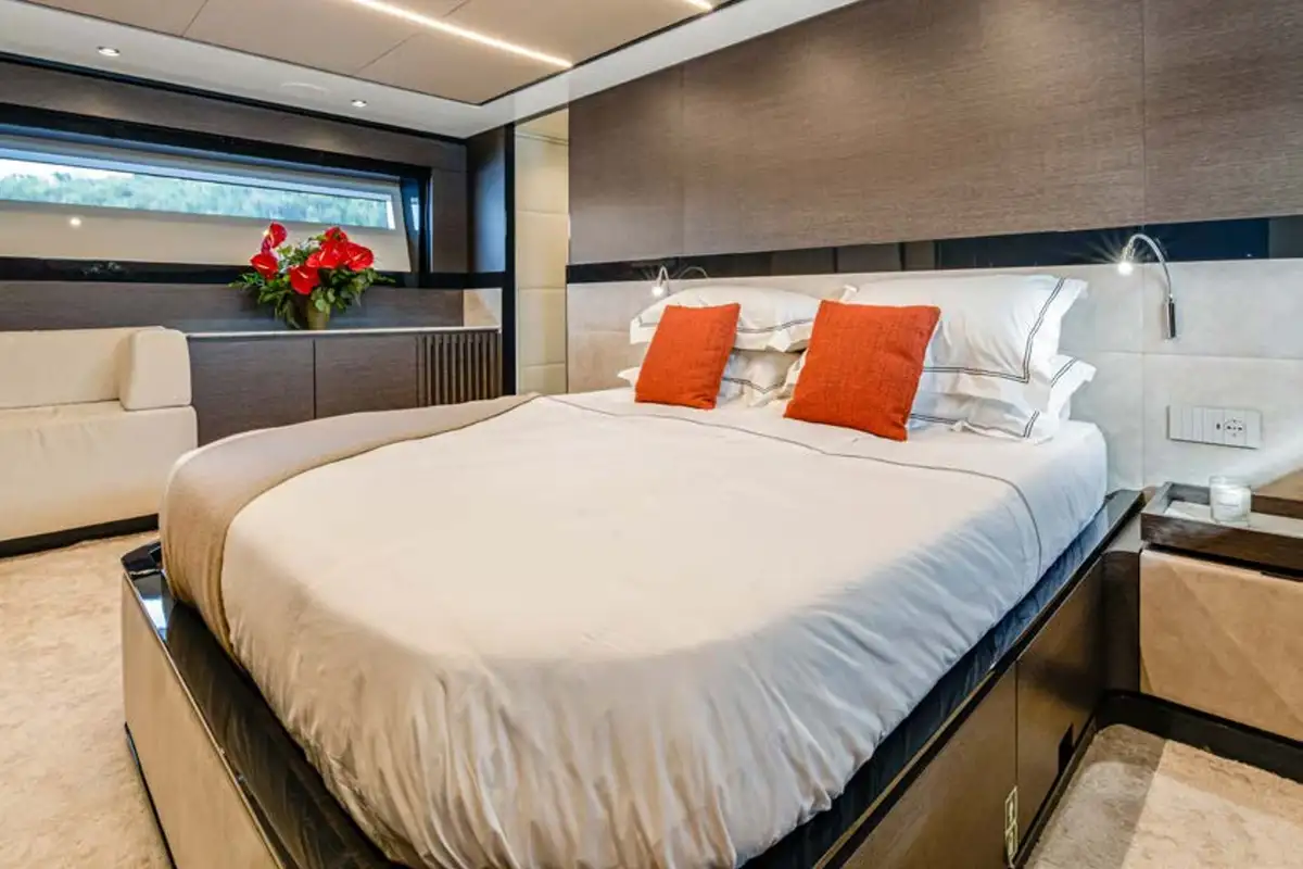 MARTITA's lower deck boasts a full beam master cabin, two twin cabins, and a VIP double cabin to complete guest accommodation for up to 8 people. Powered by twin Volvo Penta IPS 1350 engines, MARTITA is capable of reaching speeds up to 21 knots and cruises comfortably at 14 knots. Commercially compliant, having just completed her warranty works, and cared for well by her full-time crew of 3, she is in turnkey condition.