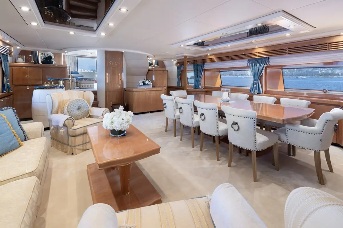 M.J.TAKNM has been designed to comfortably accommodate up to 10 guests in 5 suites. She is also capable of carrying up to 7 crew onboard to ensure a relaxed luxury yacht experience.