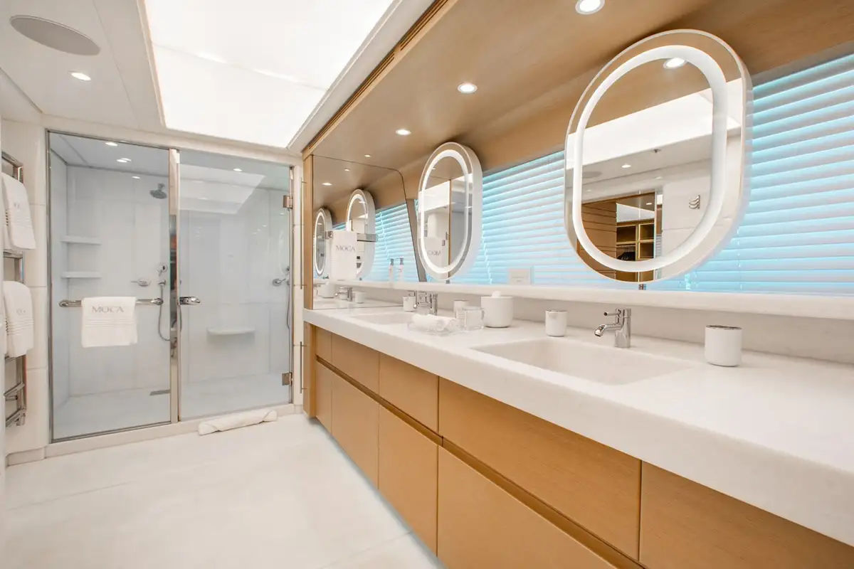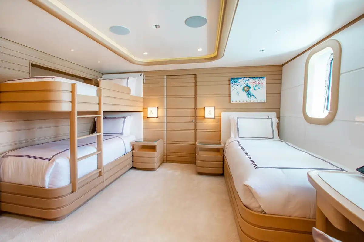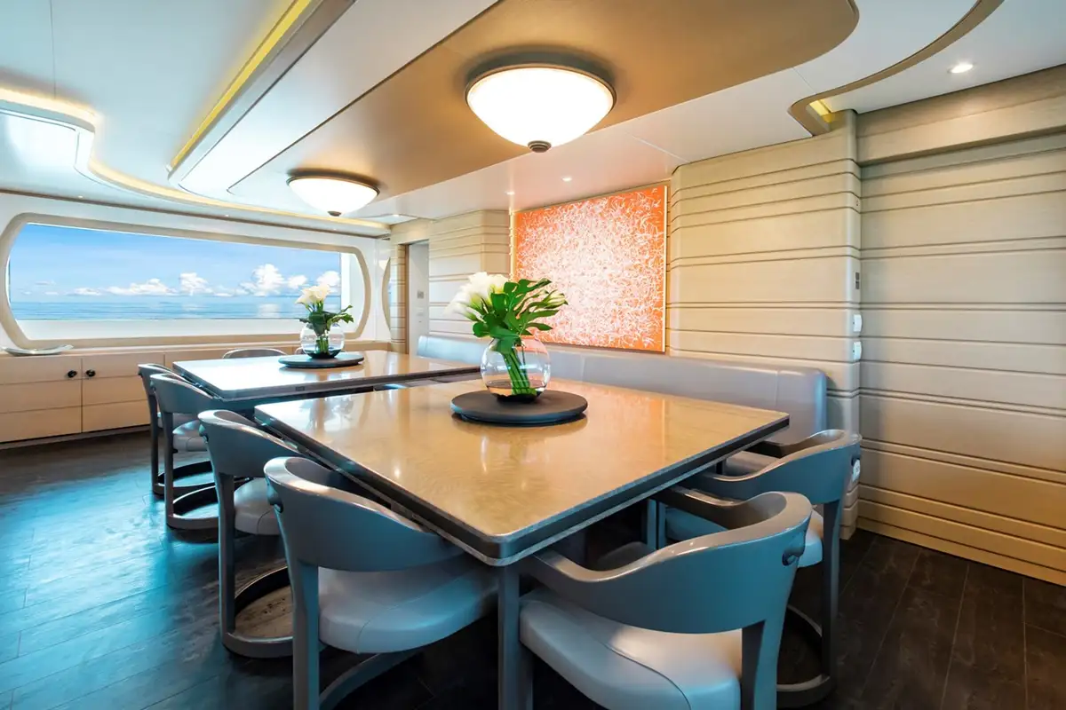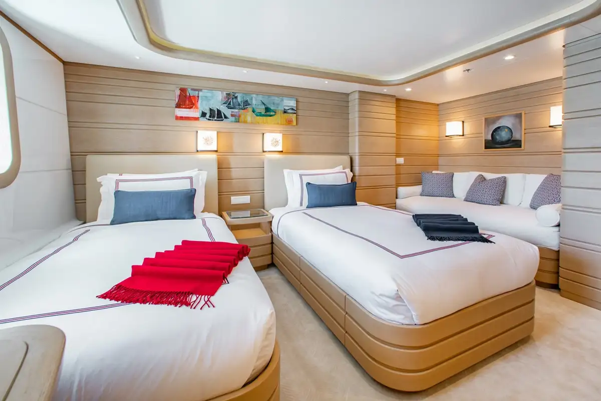 The brilliantly appointed interior accommodations has a 7 cabin layout, which accommodates 14 guests, and crew accommodations for up to 15 crew and designed for maximum comfort and storage.