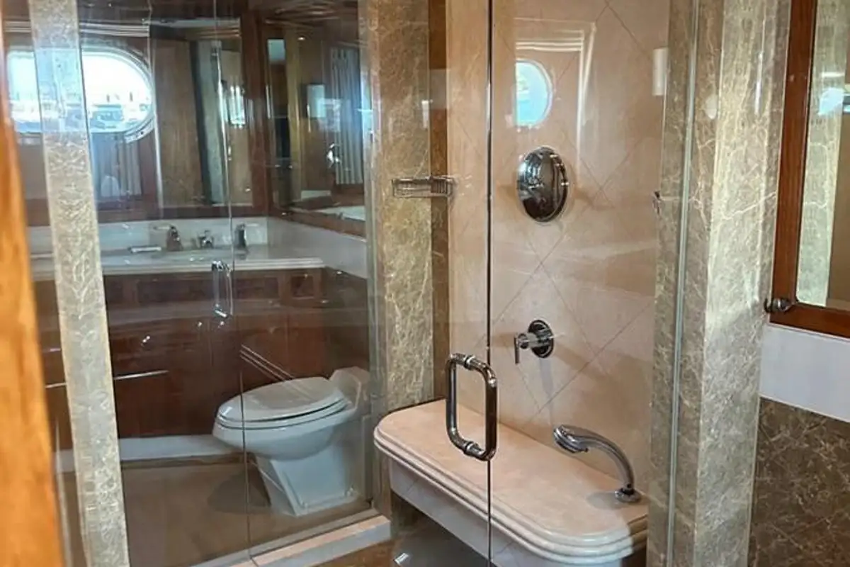 She cruises at 16 knots with a top speed of 23 knots, powered by twin Diesel Caterpillar C30’s each with an output of 1548hp. Her engines were fully serviced in June 2023. TUFF SHIP is fitted with a Sea Recovery water maker and a Naiad Multisea II roll stabilizer system