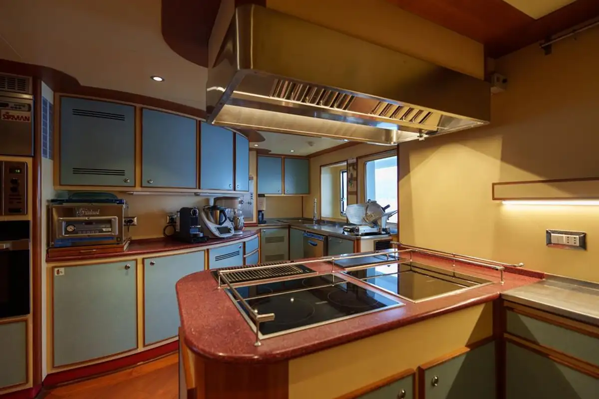 Designed as an ocean-going ship by Studio Ruggiero, she is equipped with state-of-the-art navigation equipment which is commercial grade and carefully built for long ocean passages. Twin 2,447hp Deutz engines give her a cruising speed of 16 knots and a range of 4,500 nautical miles at 12 knots. Furthermore, she has been retro fitted with zero speed stabilizers.