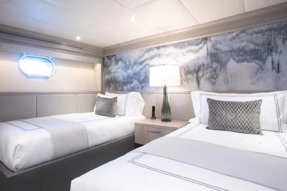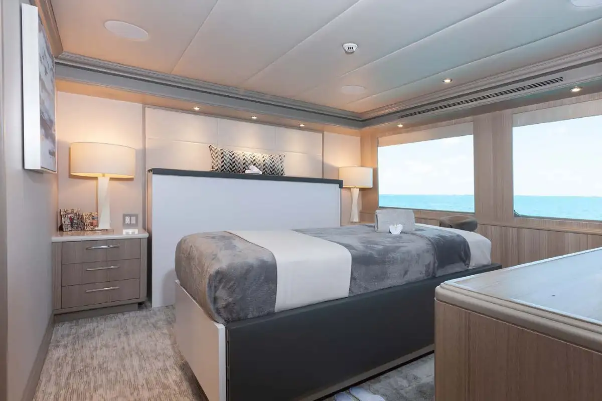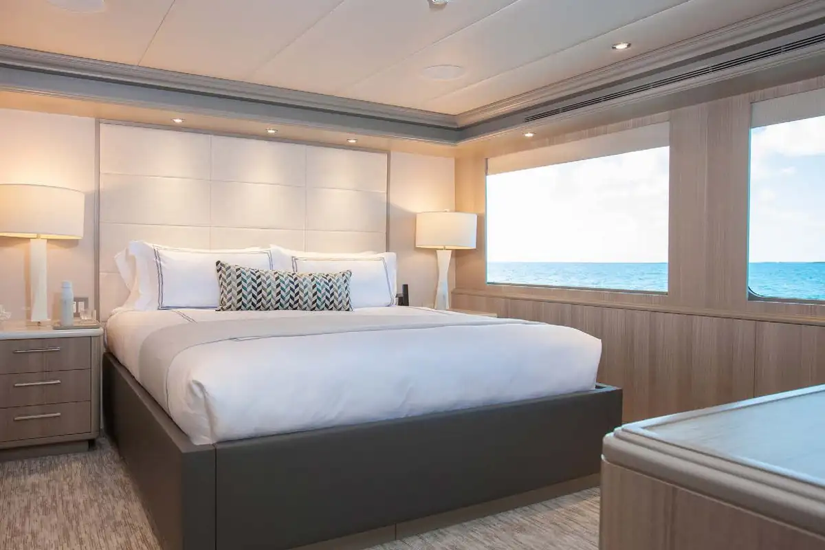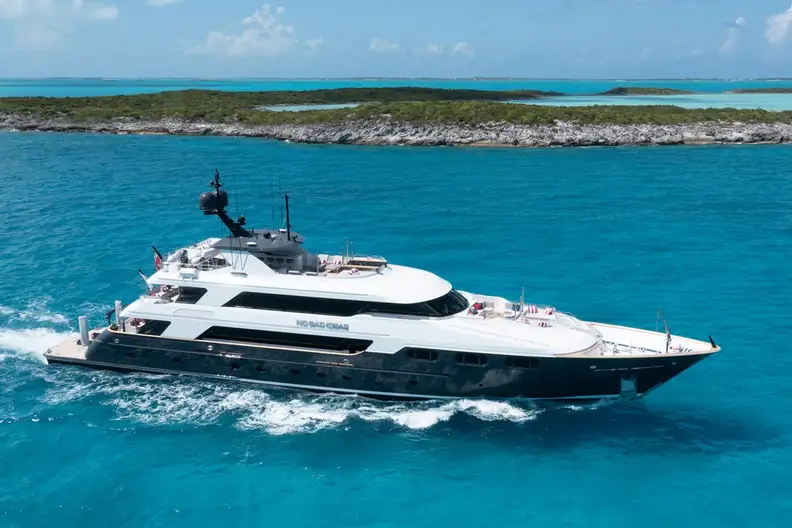 NO BAD IDEAS was constructed in aluminum by US yard, Trinity Yachts. Built to ABS class and delivered in 1999 as the first in the yard’s 150’ series, she recently underwent an extensive two year refit completed in 2024. Tastefully redesigned by A La Mer, her interior accommodates 12 guests in six cabins. The master suite is full beam guests will enjoy one VIP cabin and four double cabins, two of which can convert into twin cabins if preferred. Each cabin is equipped with entertainment centers and en suite bathroom facilities. Her separate crew quarters can accommodate up to 10 crew members