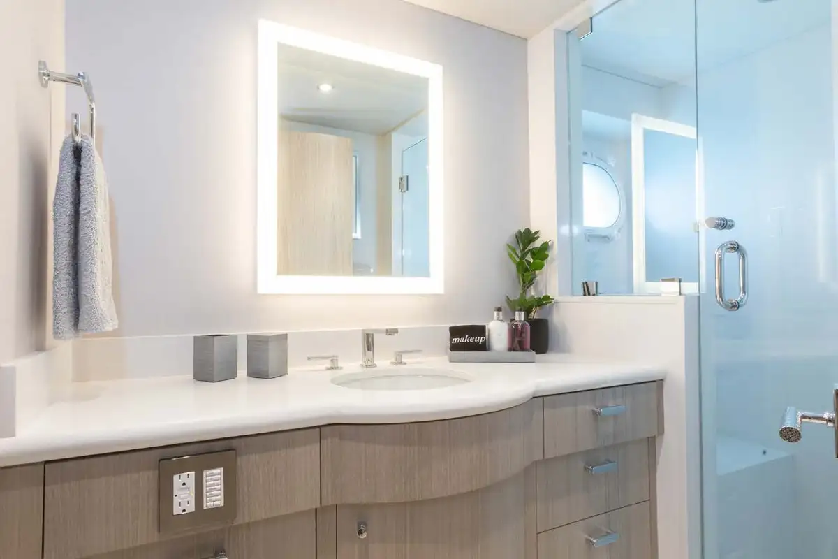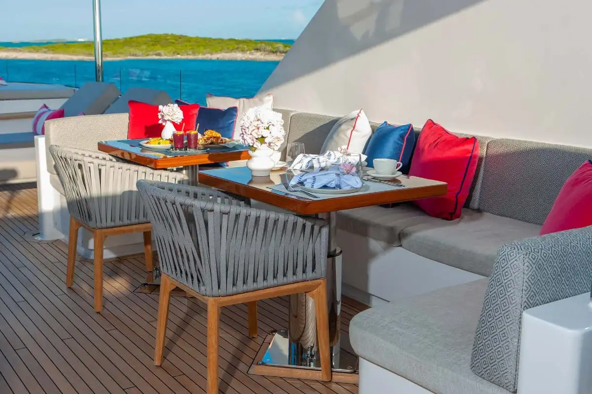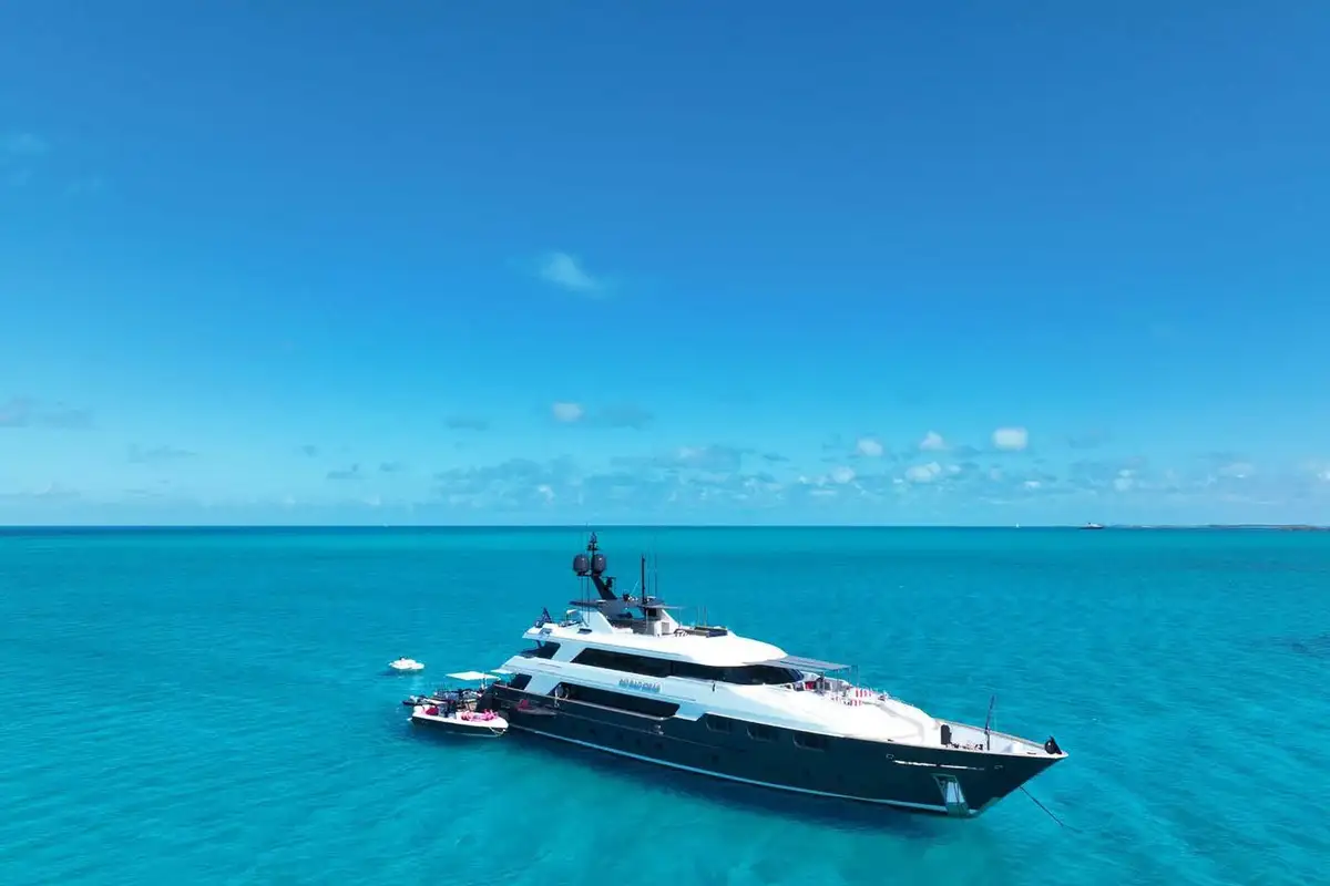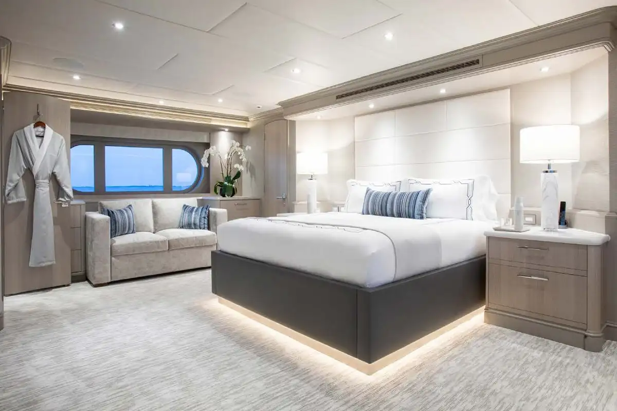 NO BAD IDEAS was constructed in aluminum by US yard, Trinity Yachts. Built to ABS class and delivered in 1999 as the first in the yard’s 150’ series, she recently underwent an extensive two year refit completed in 2024. Tastefully redesigned by A La Mer, her interior accommodates 12 guests in six cabins. The master suite is full beam guests will enjoy one VIP cabin and four double cabins, two of which can convert into twin cabins if preferred. Each cabin is equipped with entertainment centers and en suite bathroom facilities. Her separate crew quarters can accommodate up to 10 crew members