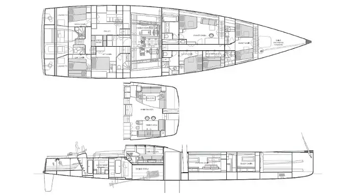 | Cabins | 5 (4 × double, 1 × double/twin, 2 × additional berths) |