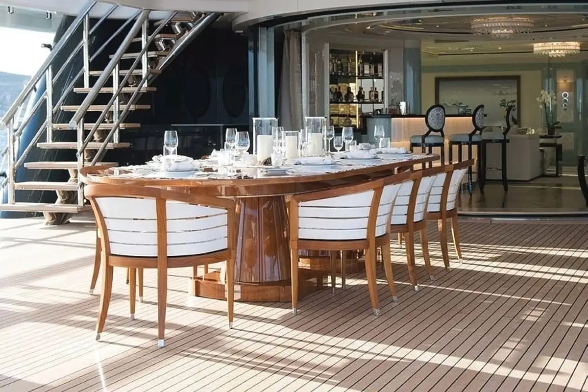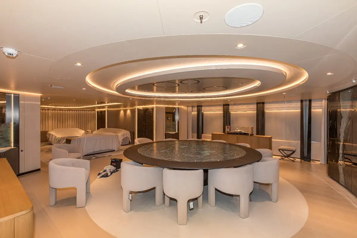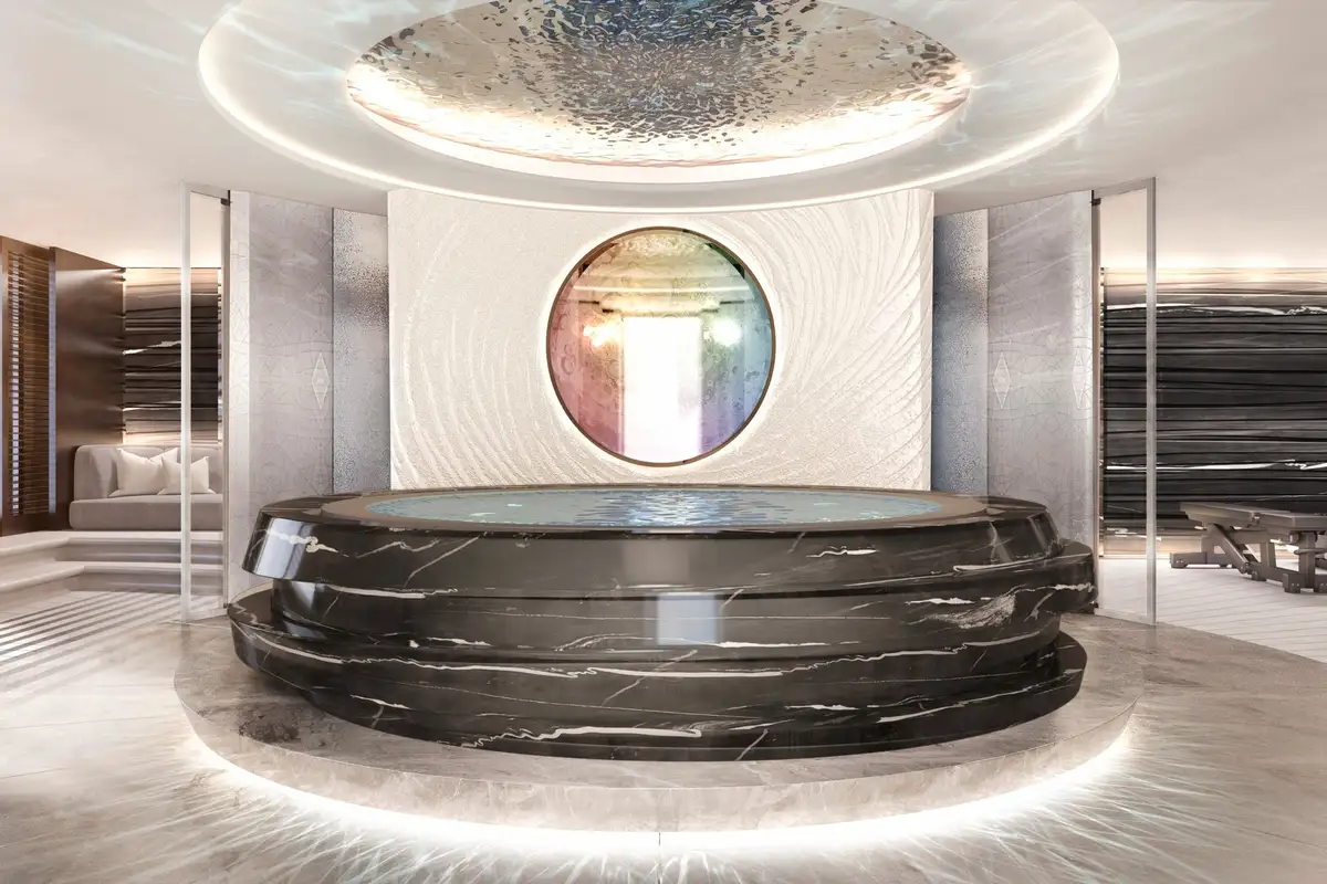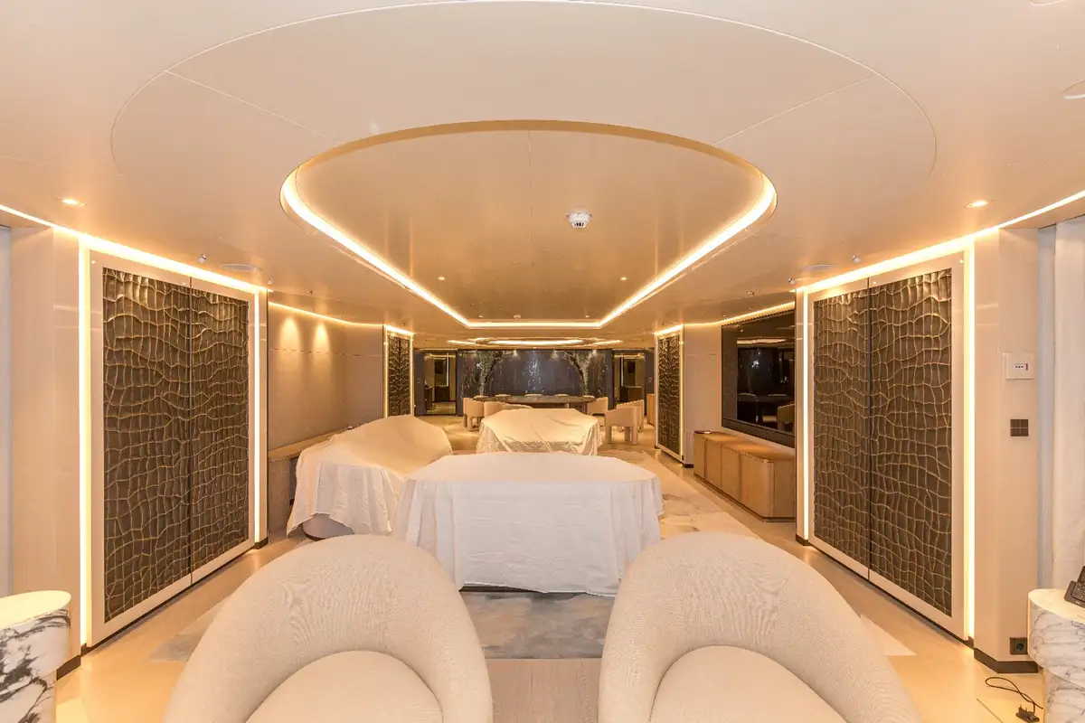 Inside, the options are equally endless, with spacious saloons and dining areas fitting for both formal and casual occasions. But the lower deck is the star of the show, where wellness is the order of the day. A jacuzzi provides the central point, around which guests can expect a sauna, steam room, juice bar, and massage and hair dressing salon.