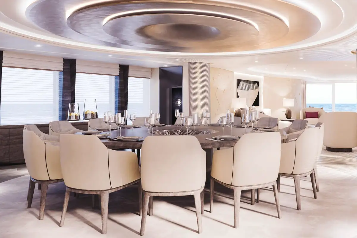 Guests will find no shortage of dining and entertainment areas across NOME’s multiple decks, including a large aft swimming pool plus a jacuzzi on the owner’s deck for private relaxation.