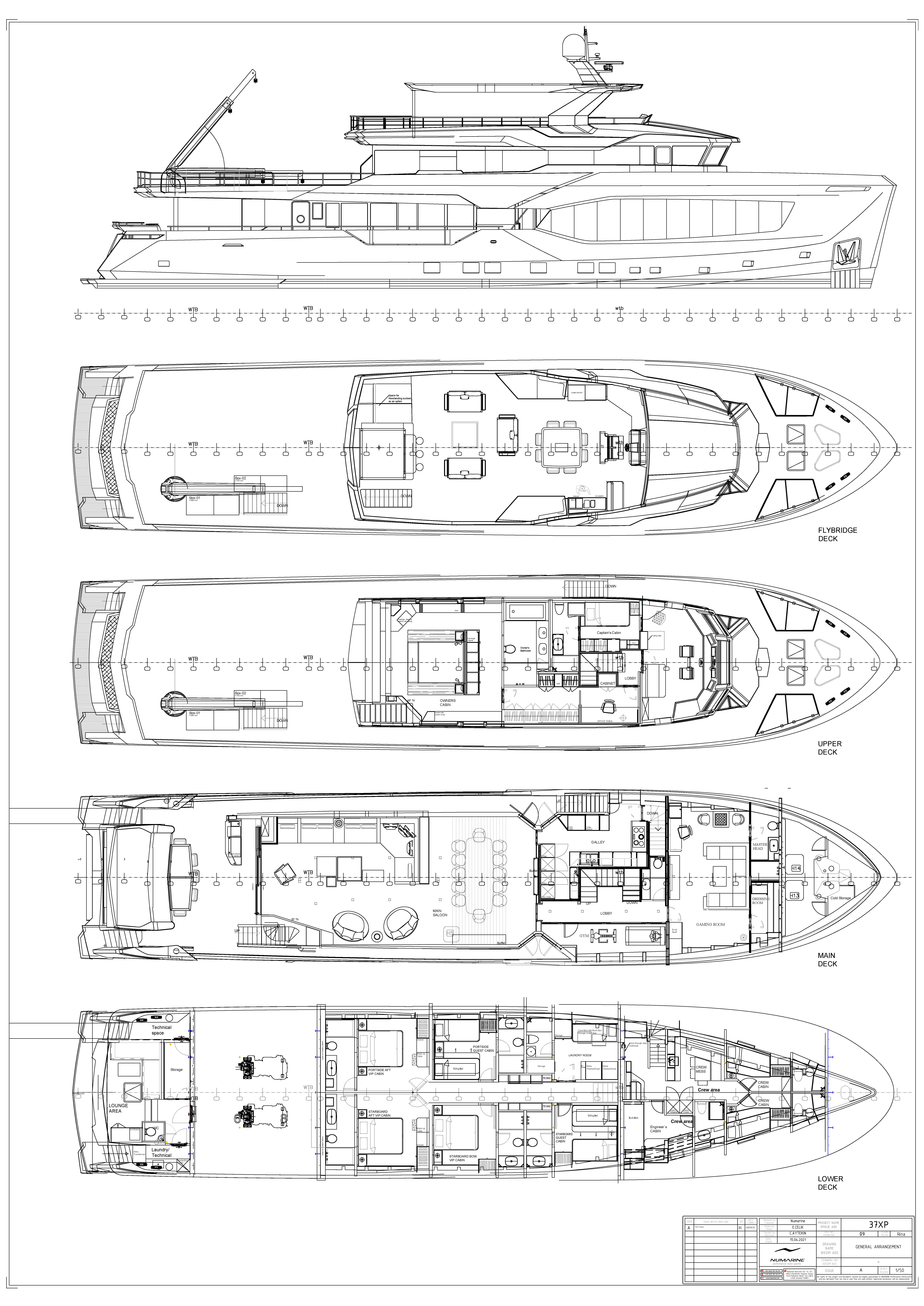 The Numarine 37XP is a 37 metre (121ft) yacht with a full displacement steel hull and teak decks. Designed inside and out by Can Yalman with naval architecture by Umberto Tagliavini, she is built to RINA classification at the Numarine shipyard in Turkey.