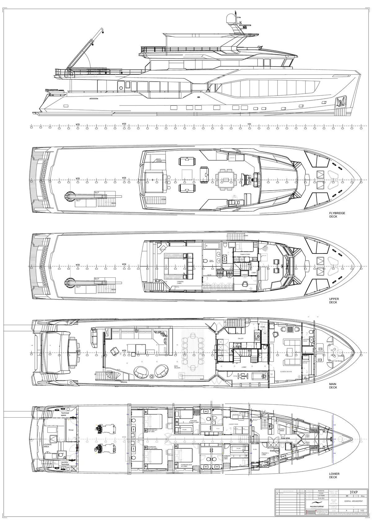 The Numarine 37XP is a 37 metre (121ft) yacht with a full displacement steel hull and teak decks. Designed inside and out by Can Yalman with naval architecture by Umberto Tagliavini, she is built to RINA classification at the Numarine shipyard in Turkey.