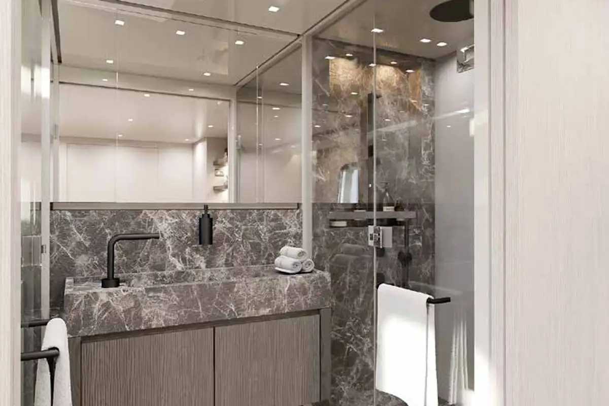 PANAME offers accommodation for up to 10 guests in 5 suites comprising an owners cabin located on the main deck, 1 VIP cabin, 2 double cabins and 1 twin cabin. She is also capable of carrying up to 5 crew onboard to ensure a relaxed luxury yacht experience.