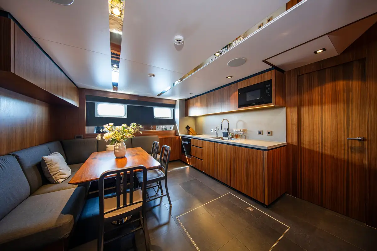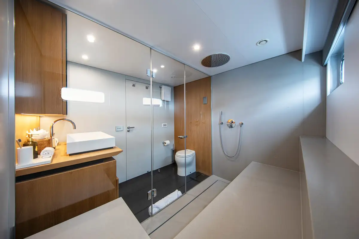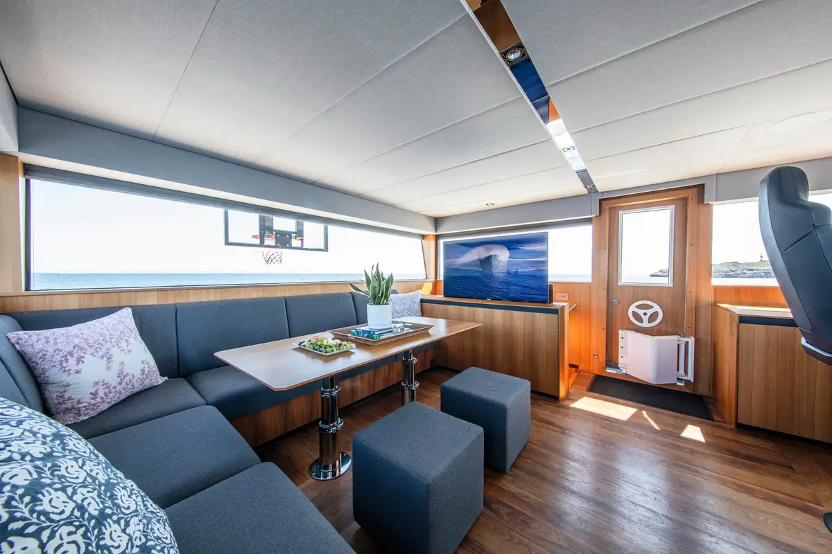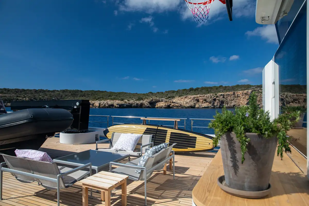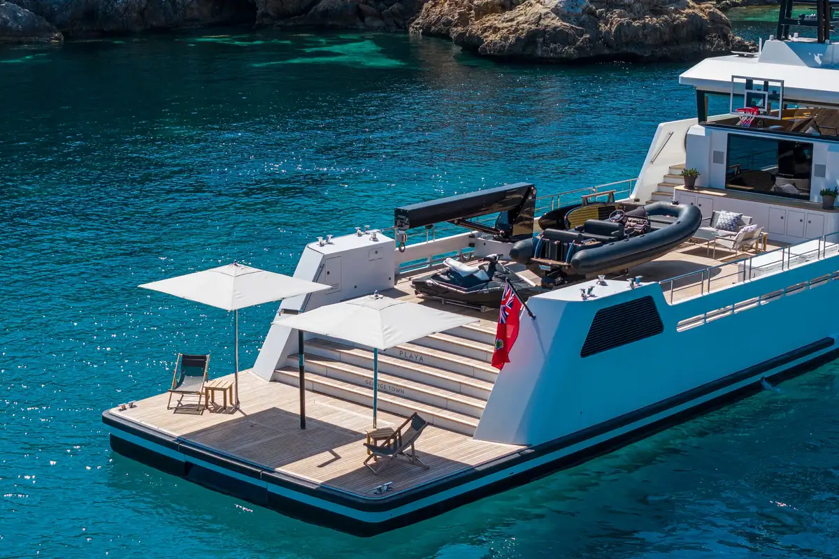Built to full yacht standards, PLAYA features a spacious main lounge and accommodates up to four guests across two cabins, including a VIP. Her expansive aft deck and beach‑club‑style arrangement provide a highly versatile platform for tenders, toys, vehicles, and adventure equipment. A dedicated gym, sauna, steam room and hyperbaric wellness chamber further enhance her appeal for active owners seeking a focus on fitness, recovery, and wellbeing.