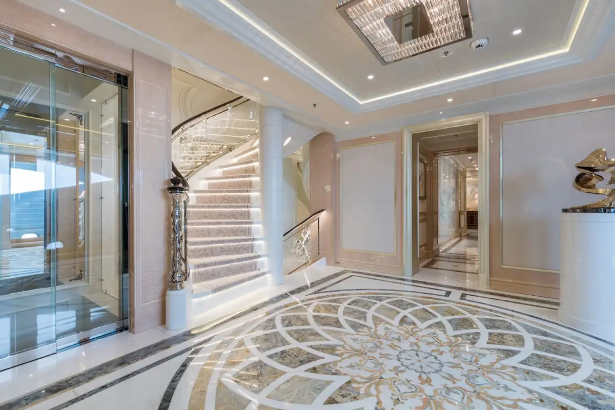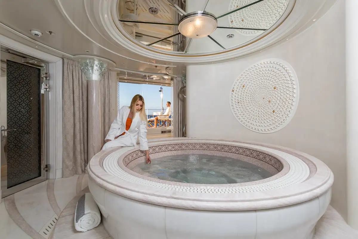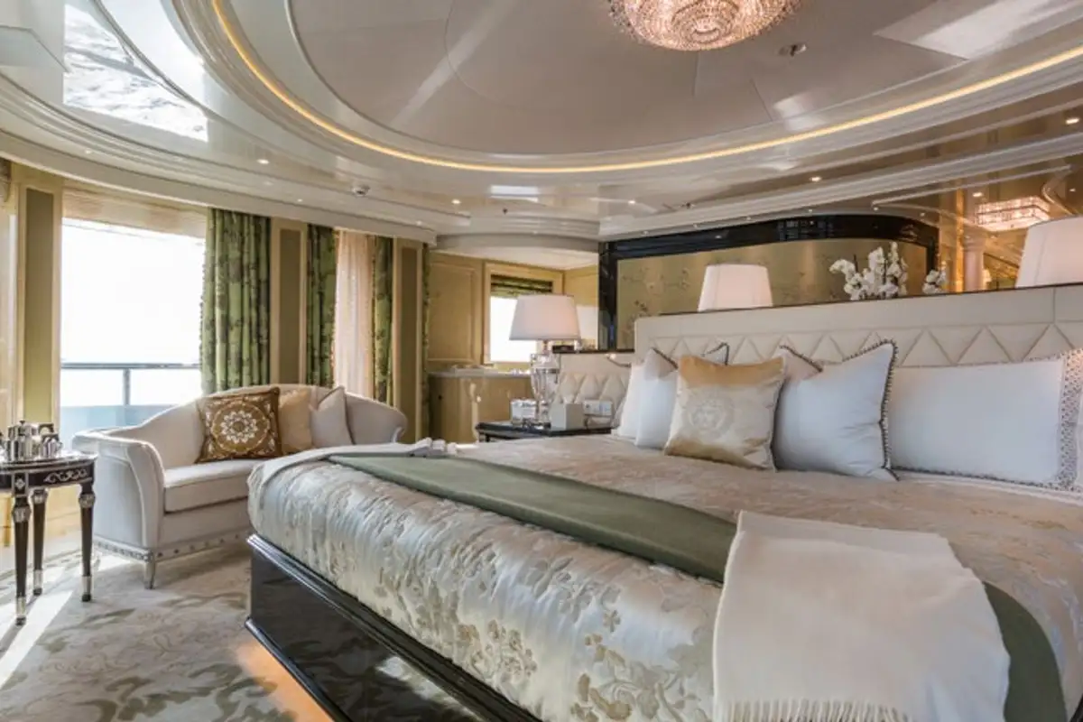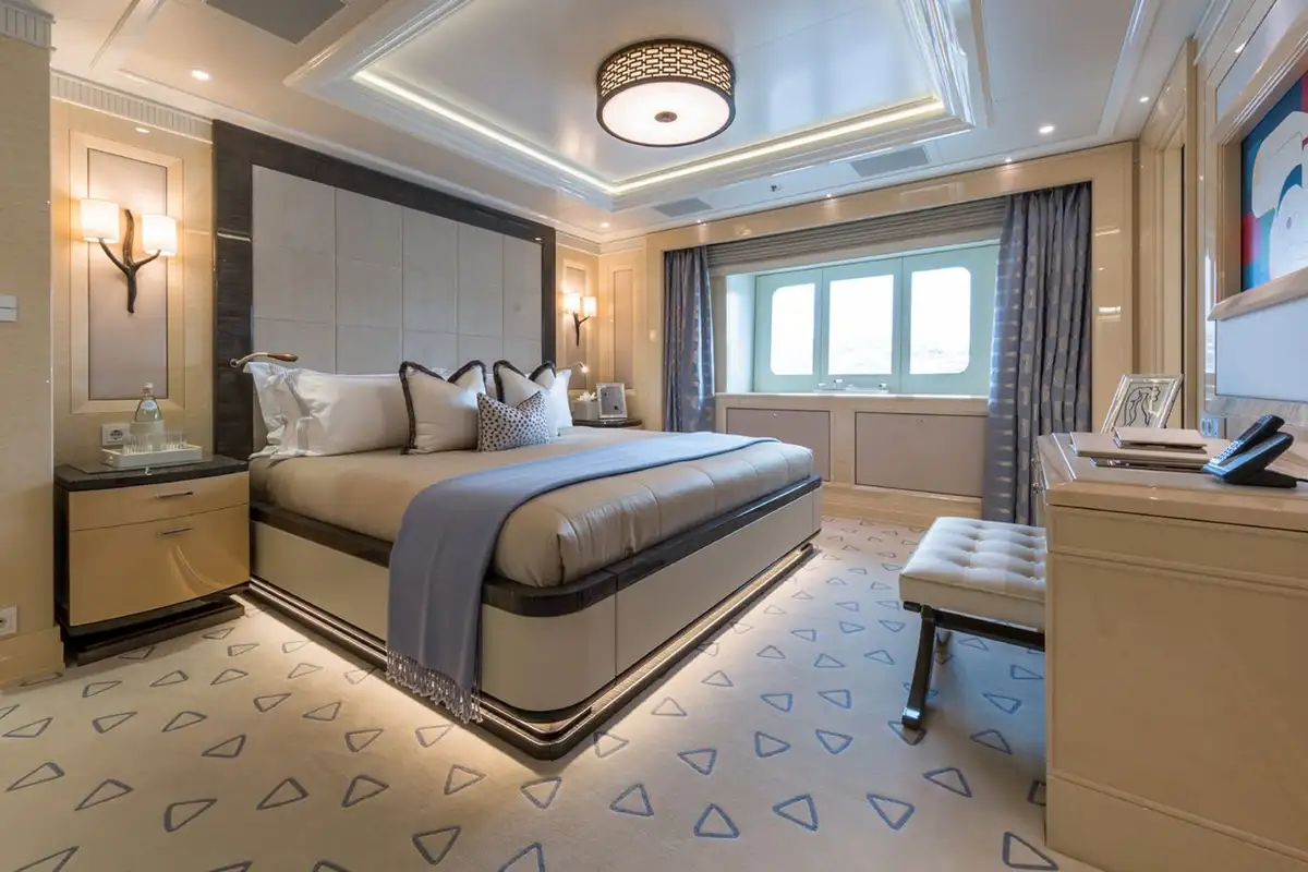 The yacht has a dedicated owner’s deck with forward facing owner’s suite - exquisitely crafted with Andrew Winch’s fresh take on Côte d'Azur grandeur. PLVS VLTRA has spacious accommodation for up to 12 guests in six suites and 19 crew.