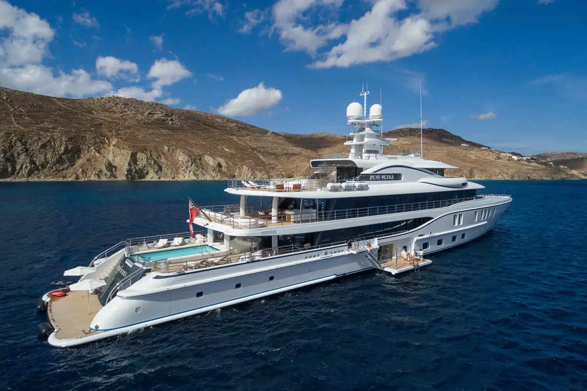 The first yacht in the Amels 242 series, the 74m (242.7ft) PLVS VLTRA has a sleek Tim Heywood design that makes her instantly recognisable at any marina.