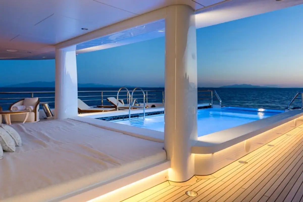 Delivered in 2016, this family yacht features large outdoor spaces, a 6.5m (21 ft) pool on the main deck aft and a jacuzzi on the sun deck. Connections to the sea include the unique beach club midships which connects to a large wellness area.