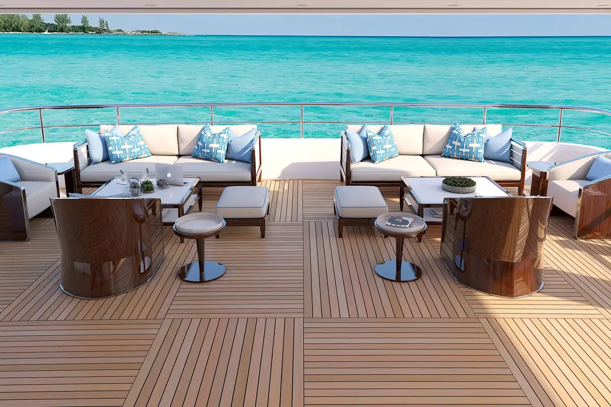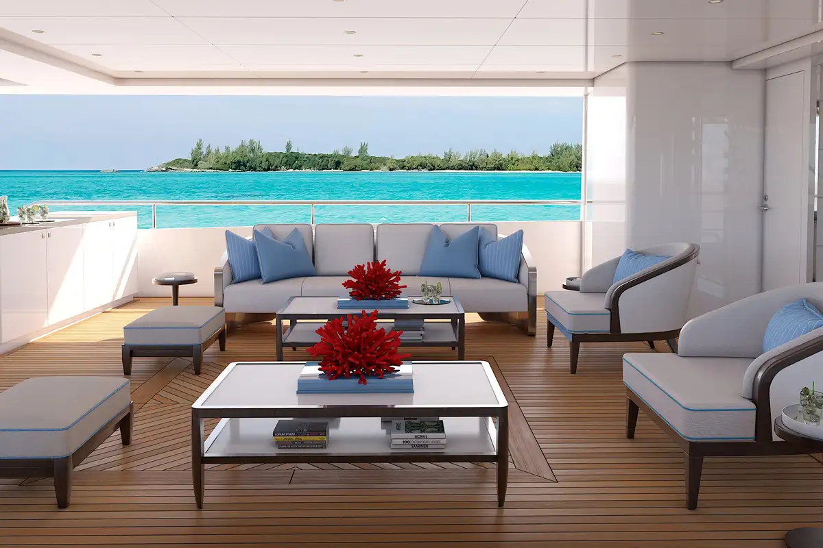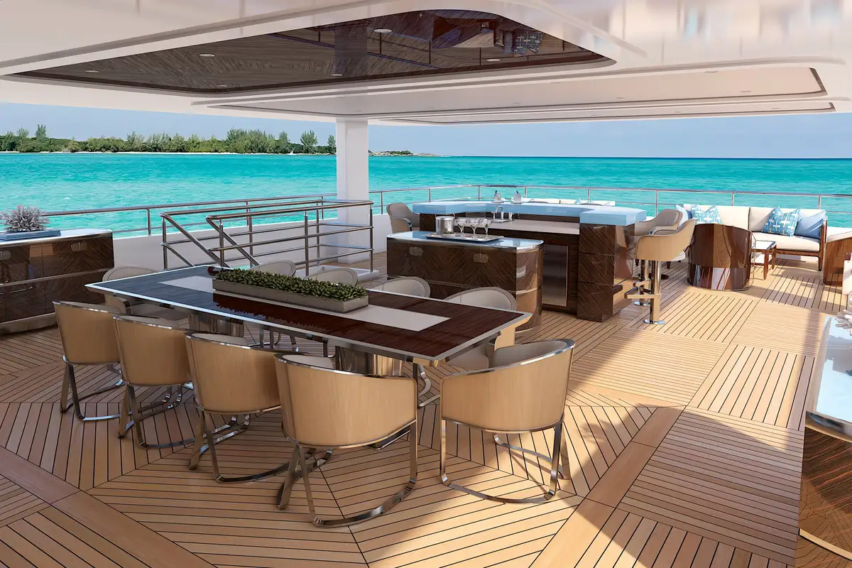 Accessibility is paramount, with a handicap-accessible elevator servicing all four decks, ensuring that every guest can experience the ultimate in comfort and convenience. The flexible interior décor allows you to customize your yacht to suit your unique tastes, whether you choose your own designer or opt for an interior designed by the renowned De Basto Designs or Patrick Knowles Design.