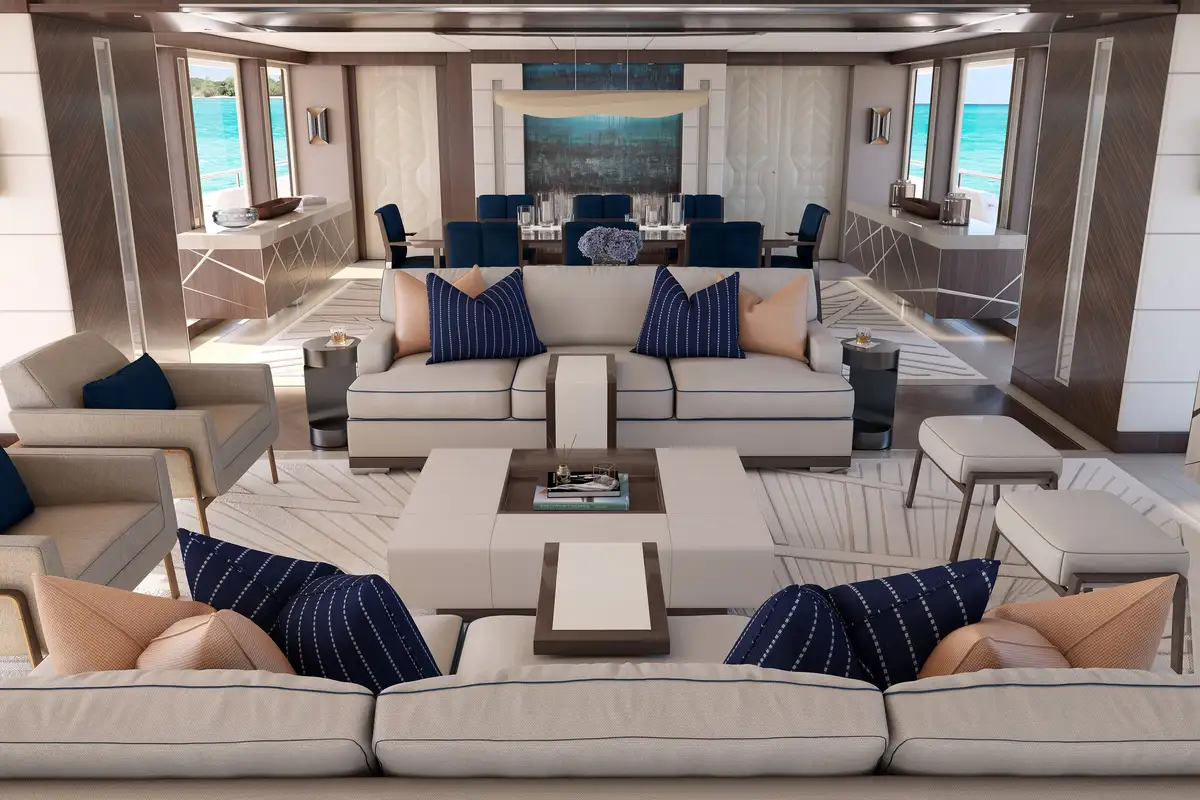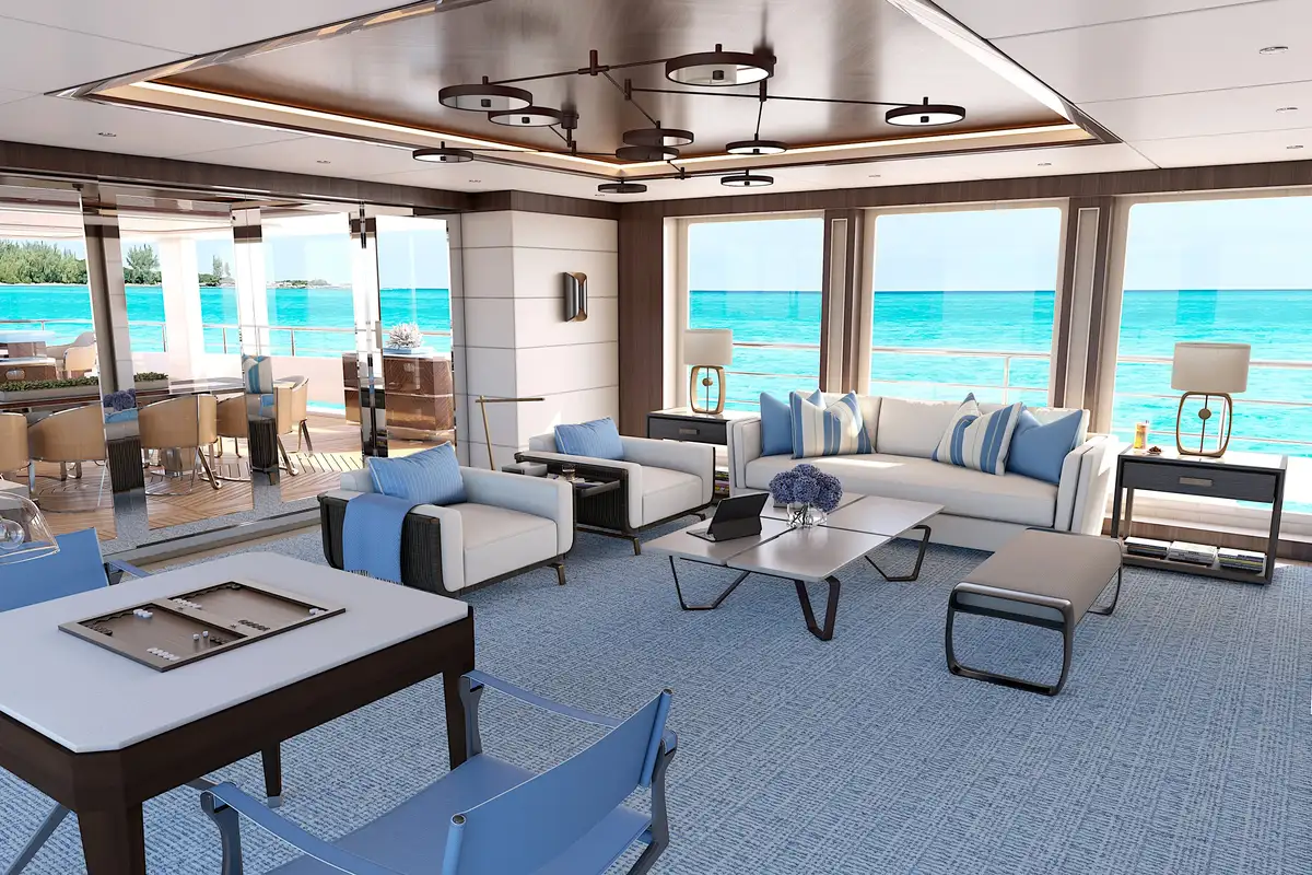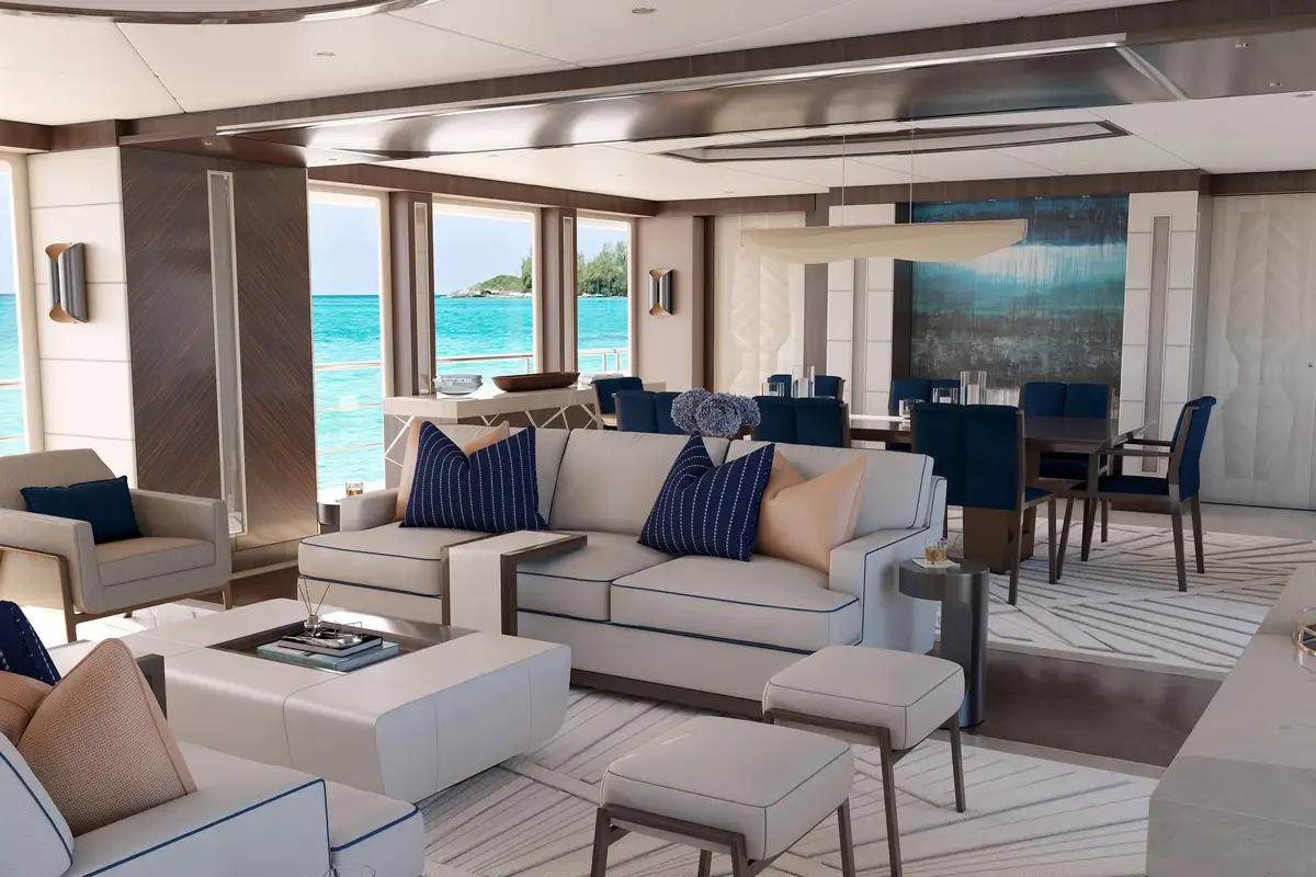 Designed to maximize natural light and offer stunning panoramic views, the PROJECT 515 features large windows throughout, creating an ambiance of spaciousness and tranquility. The large windows in each crew stateroom ensure that even below deck, natural light abounds, creating a welcoming and inviting atmosphere.