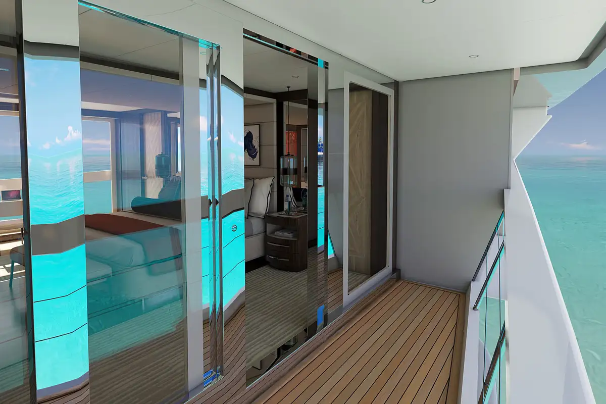 - Built-in starboard side balcony in Owner’s Stateroom