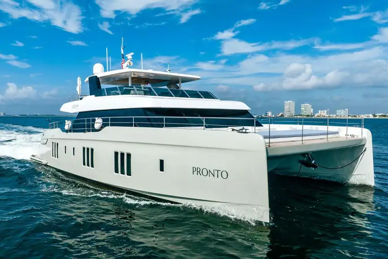PRONTO is a 24m (79ft) luxury catamaran. She was built in 2022 by Sunreef to achieve the highest levels of comfort and luxury. Everything, from her beach-inspired decor, technical specifications to her smart custom layout, makes her the perfect yacht for private getaways.