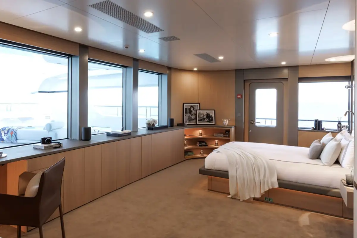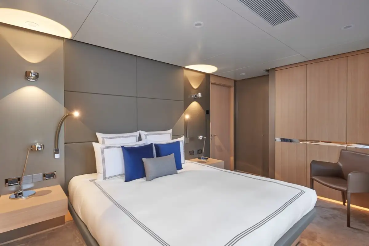 REDUCE’s interior is configured to host 12 guests in five cabins. Her full-beam master cabin is located on main deck forward and features a private en suite bathroom. Guests will find comfort in her two double cabins on the upper deck, a twin cabin on the main deck, and an additional twin cabin on the lower deck. She can accommodate a crew of seven.