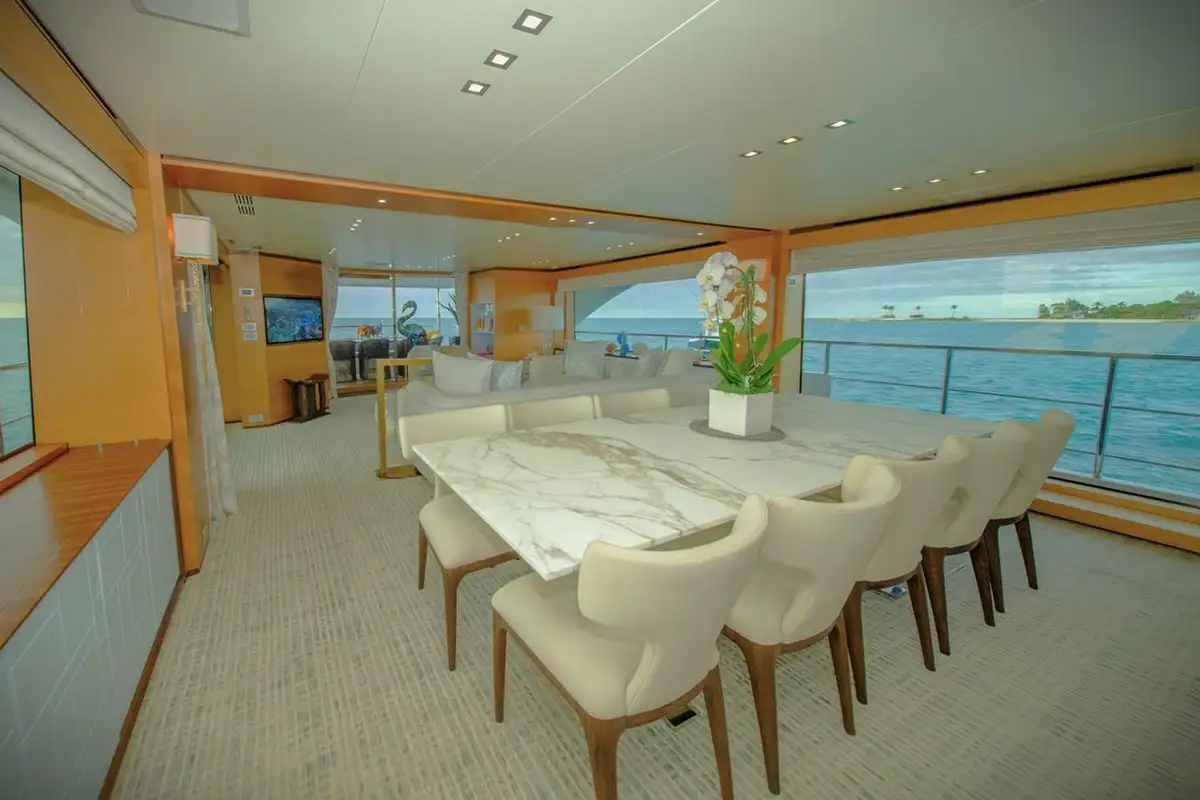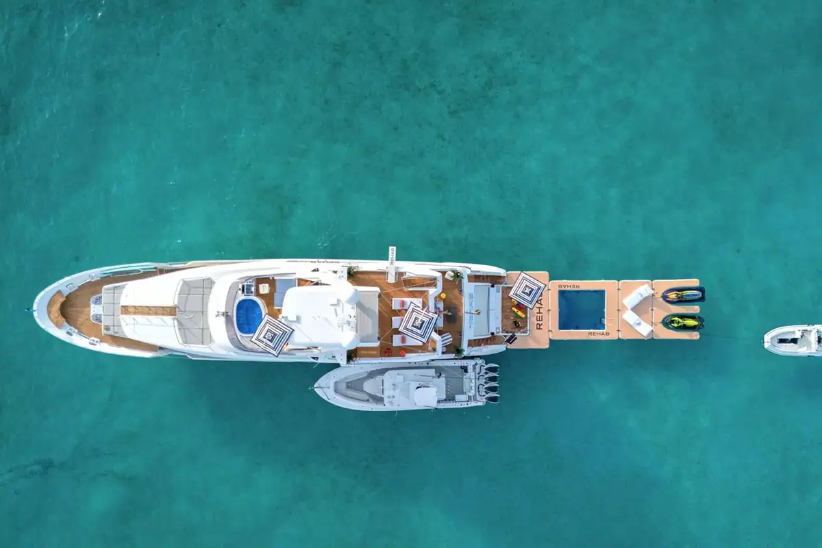 Featuring a contemporary design, REHAB accommodates a total of 10 guests in 5 staterooms with an Owner's cabin on the main deck. Floor to ceiling windows give an amazing view to the sea while the PVE elevator improves accessibility for all guests.