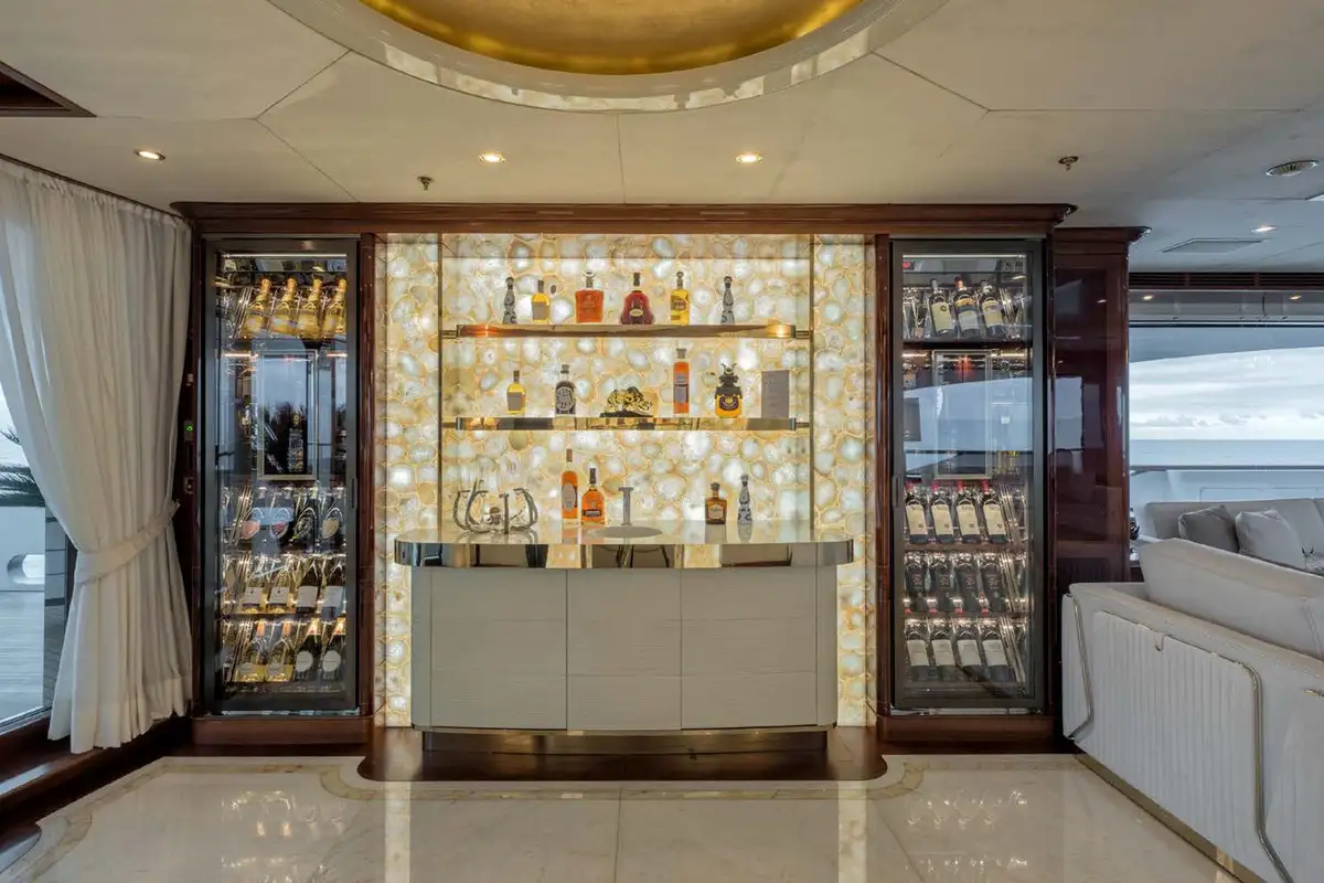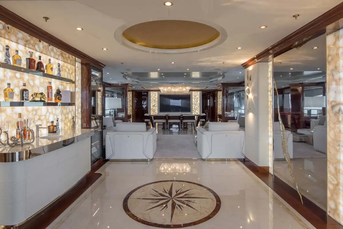 Her elegant interiors boast a new Agata bar, custom wine cellars, expanded living spaces and premium dining areas.