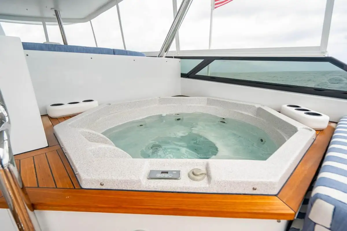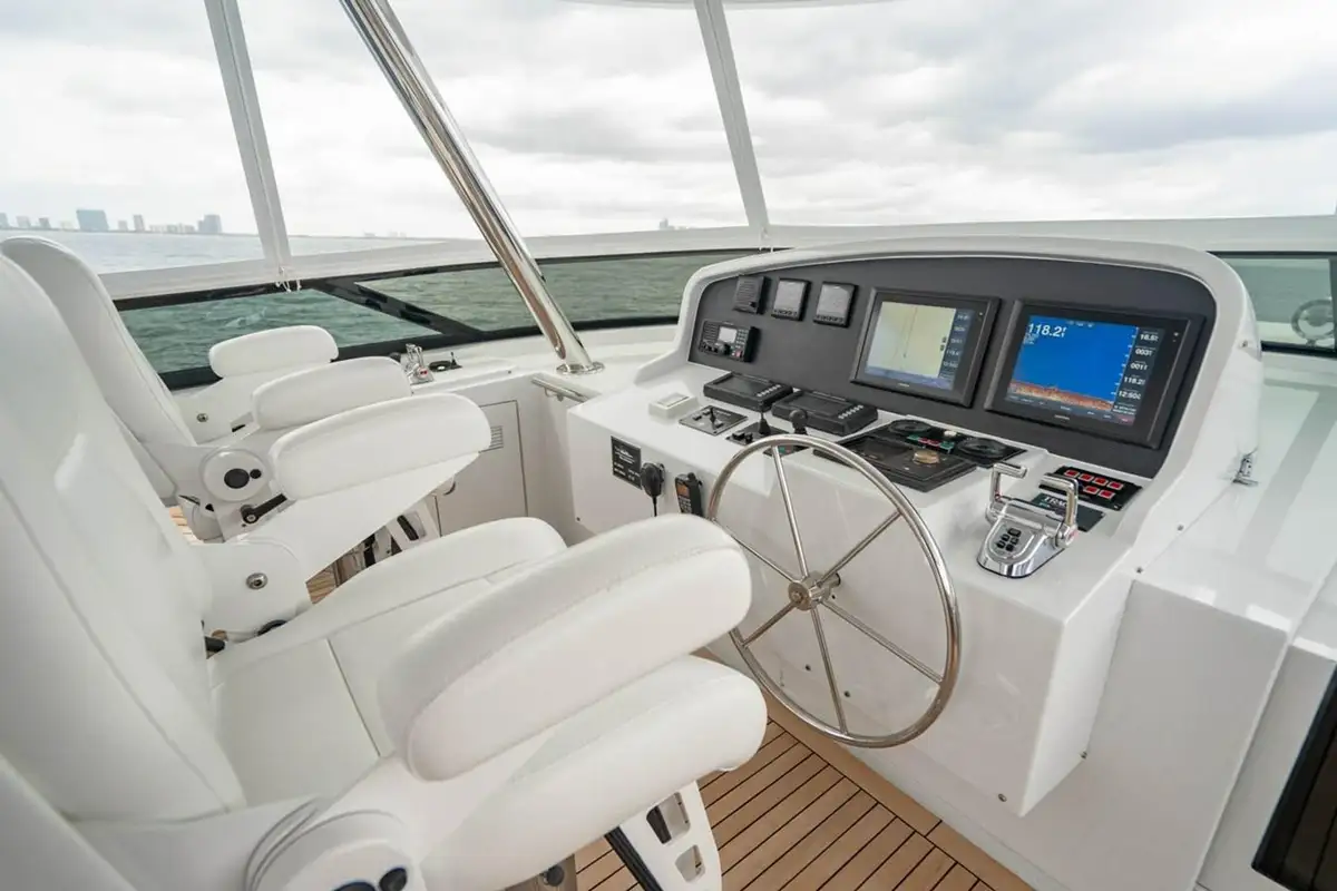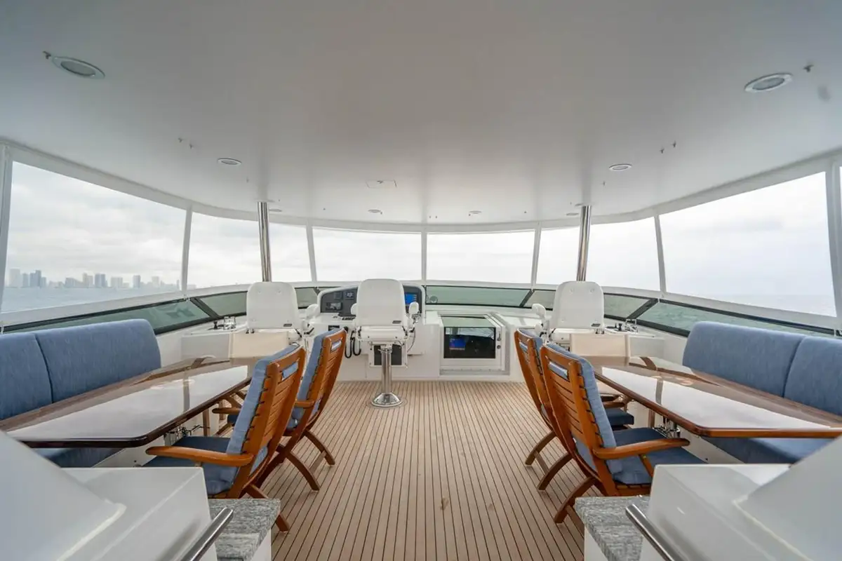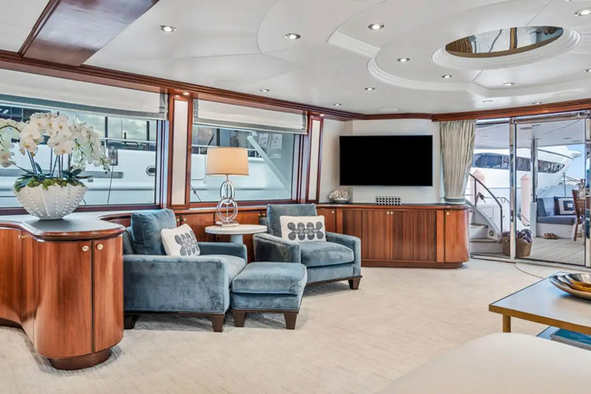 The recent refit works include new zero speed stabilisers, a new flybridge enclosure, upgraded entertainment and navigational systems, a major service of both engines, new exterior and interior furniture, a completely new galley, overhauls and rebuilds of key mechanical and technical systems, a full repaint and much more.