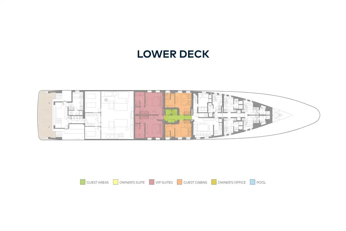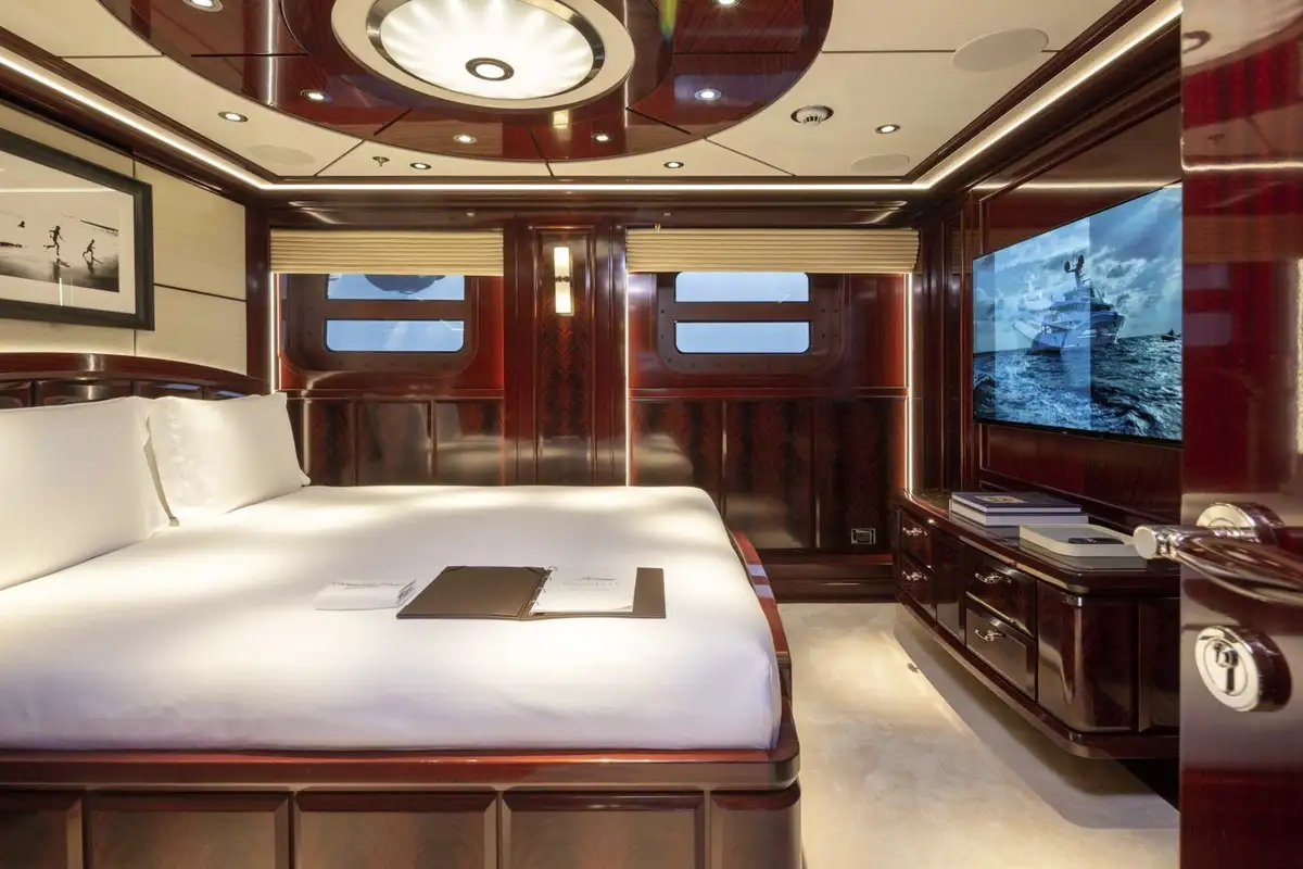• Accommodation for 10 guests in 5 cabins (full beam Master suite, 2 x VIP staterooms, 1 double king size cabin and 1 twin